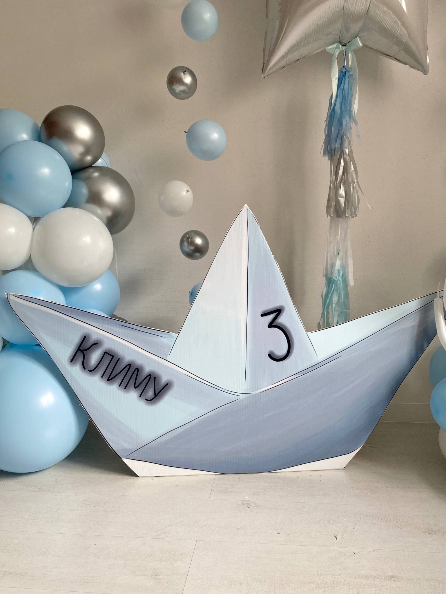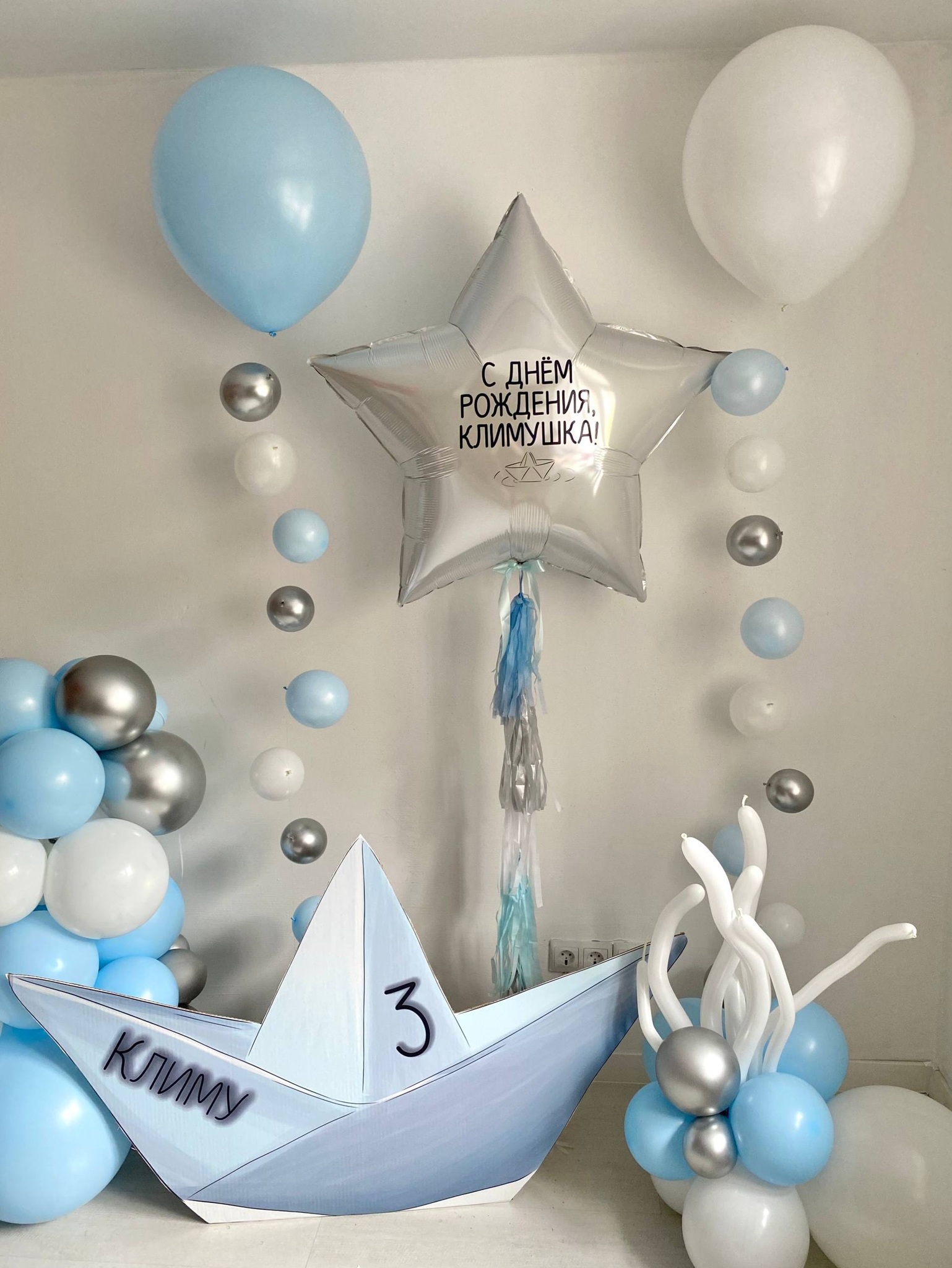 Воздушные шары для мальчика морская тематика белый/серебро/пыльно-голубой №3443