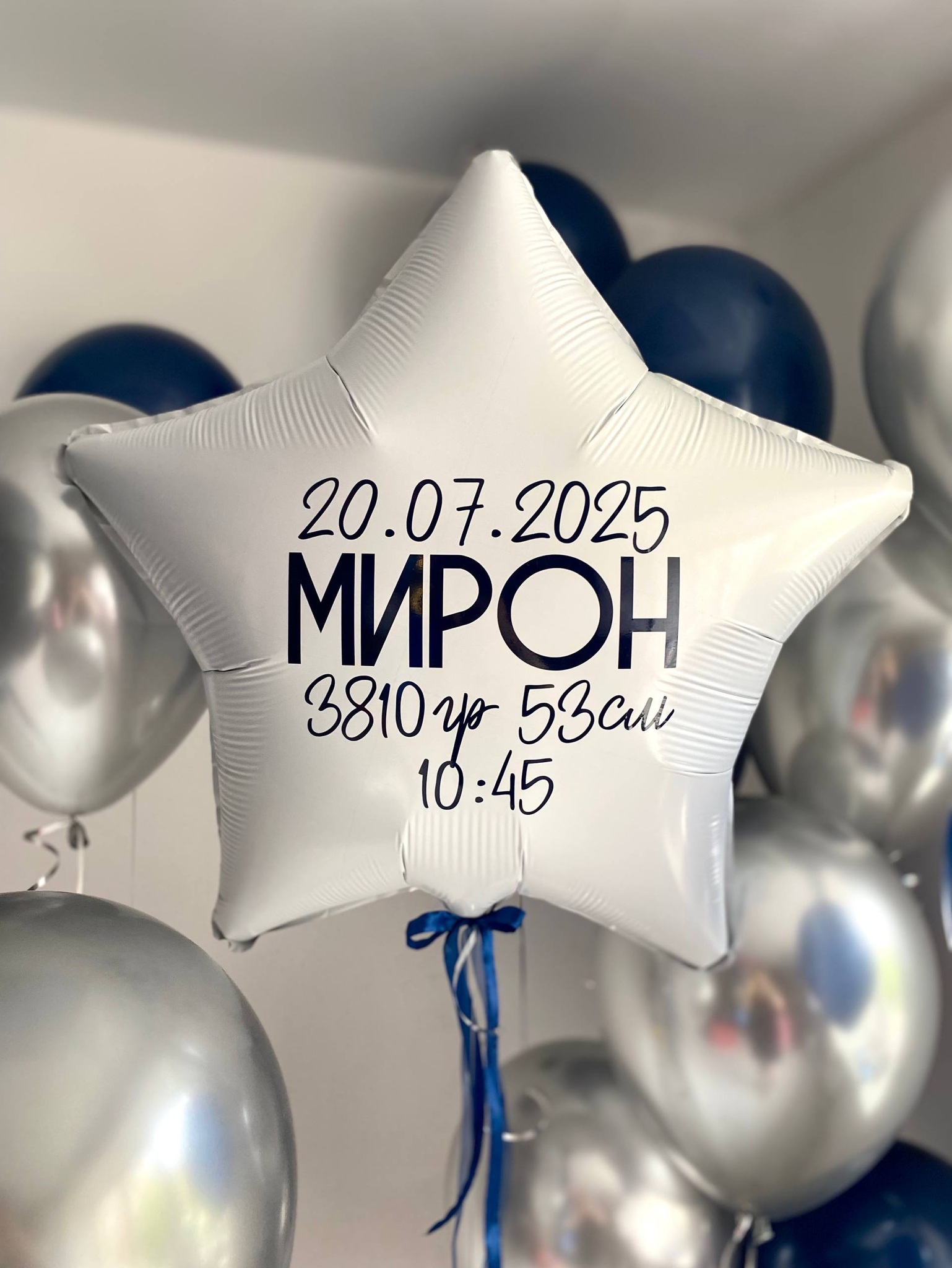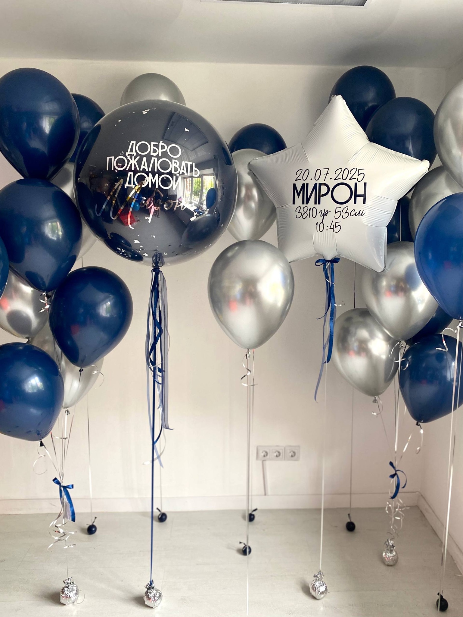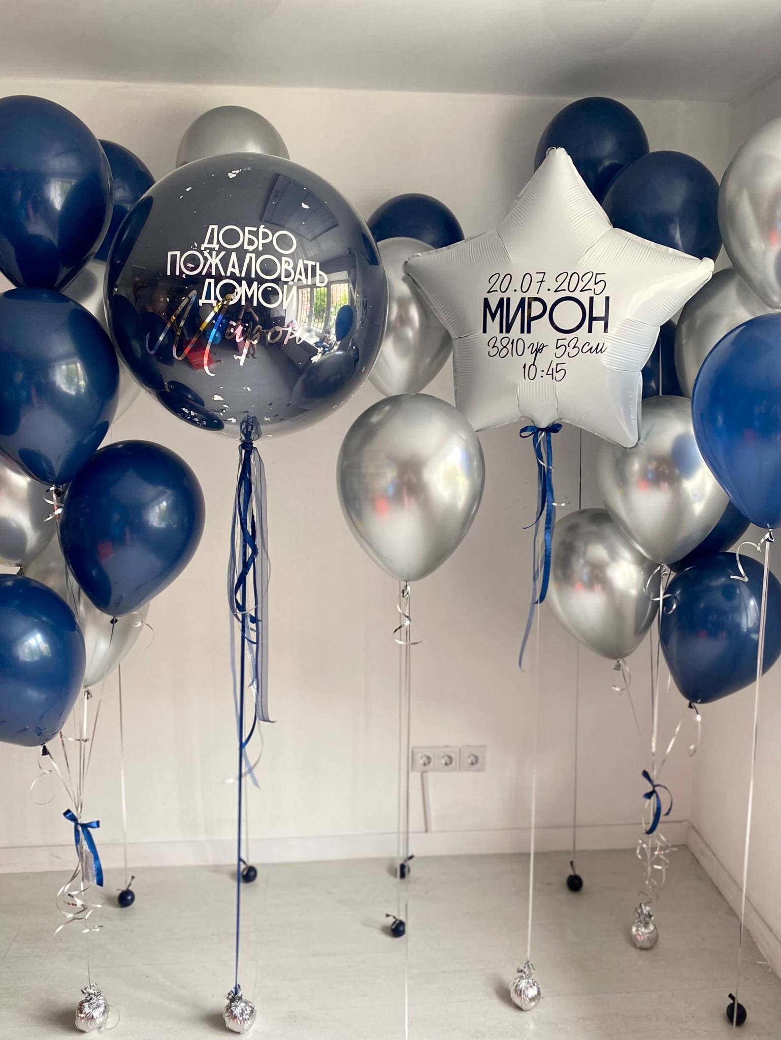 Воздушные шары на выписку из роддома темно-синий/хром серебро №3536