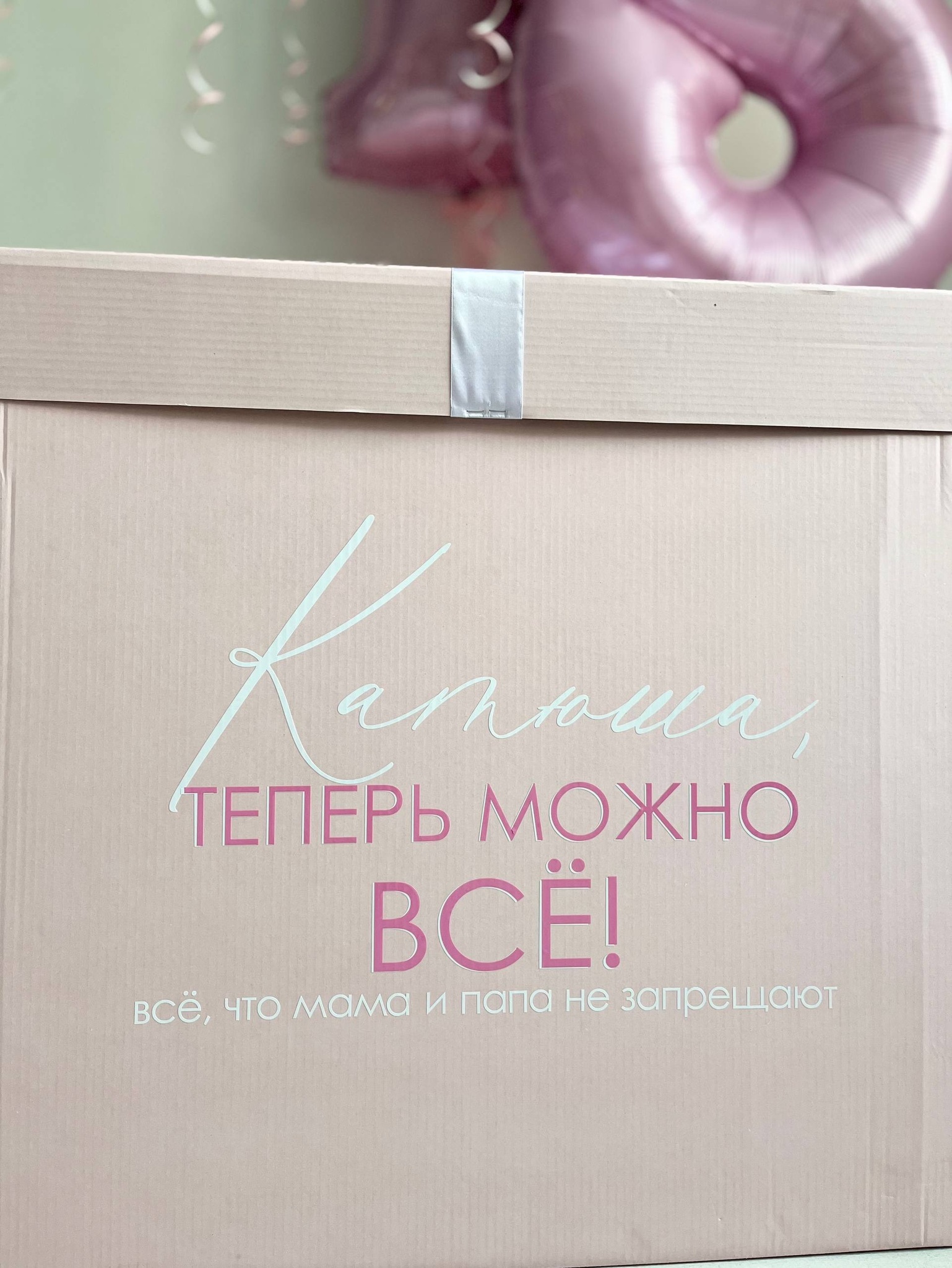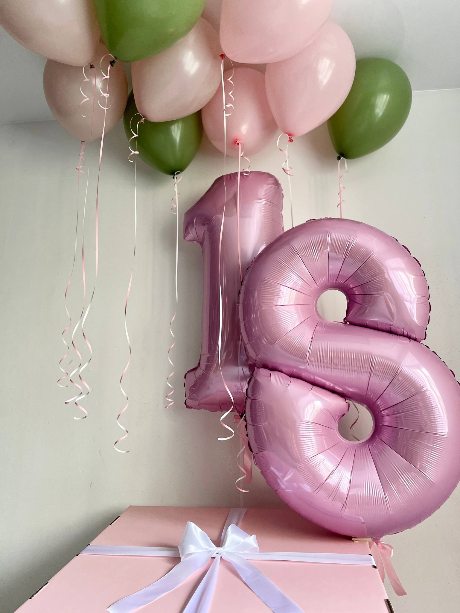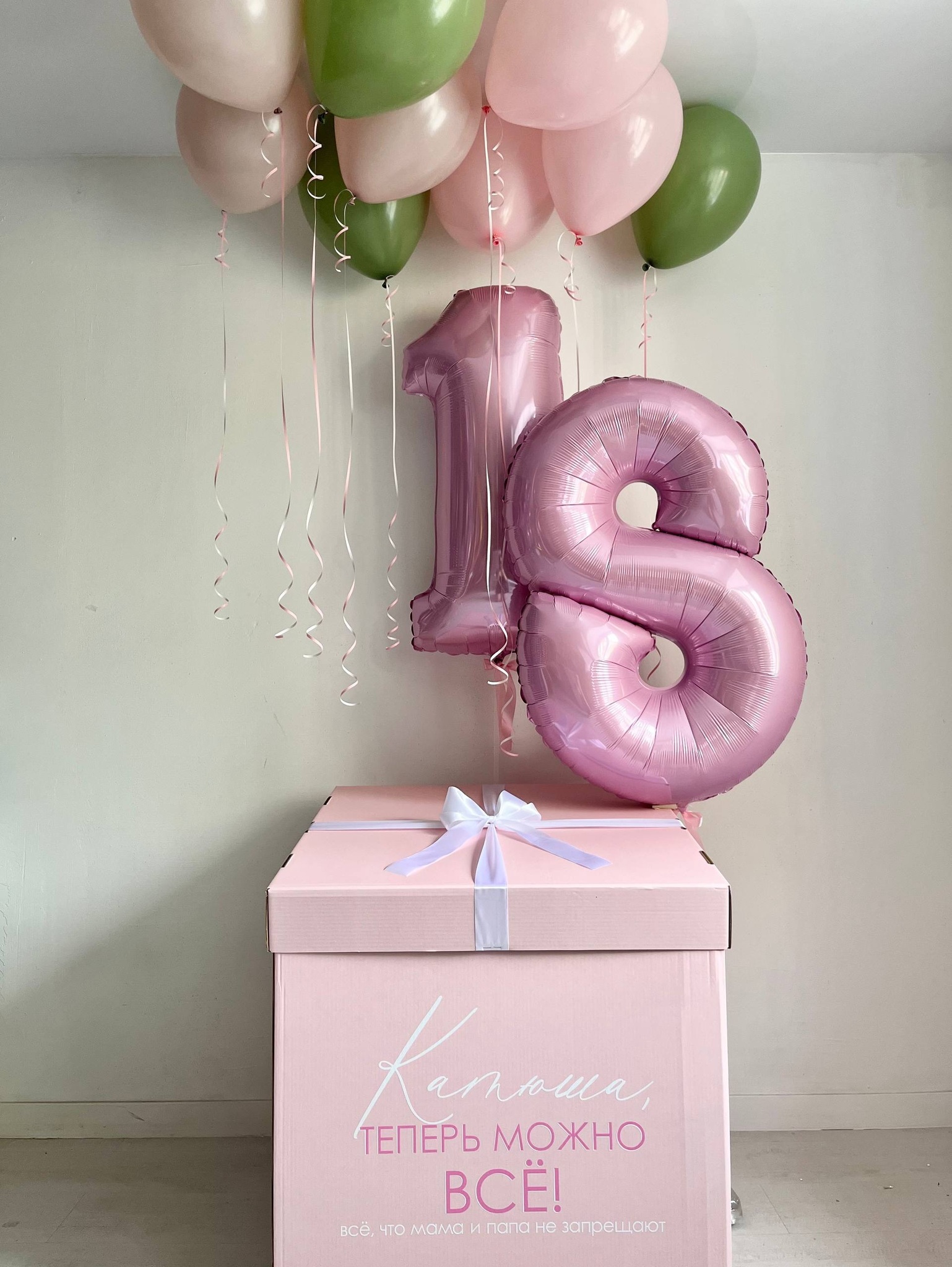 Воздушные шары на 18 лет девушке большая розовая коробка сюрприз №3544
