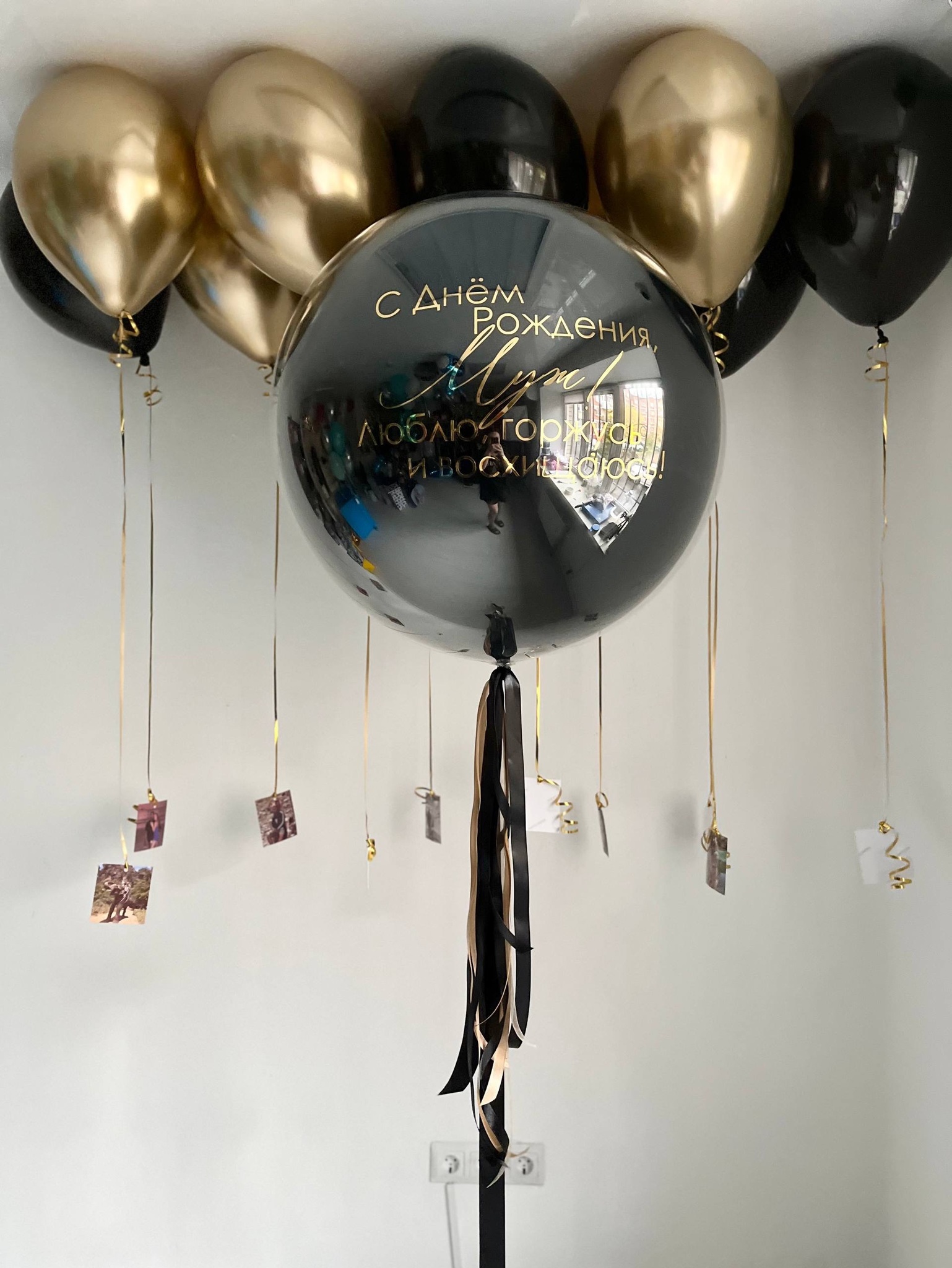 Воздушные шары для мужа черный/золото №3821