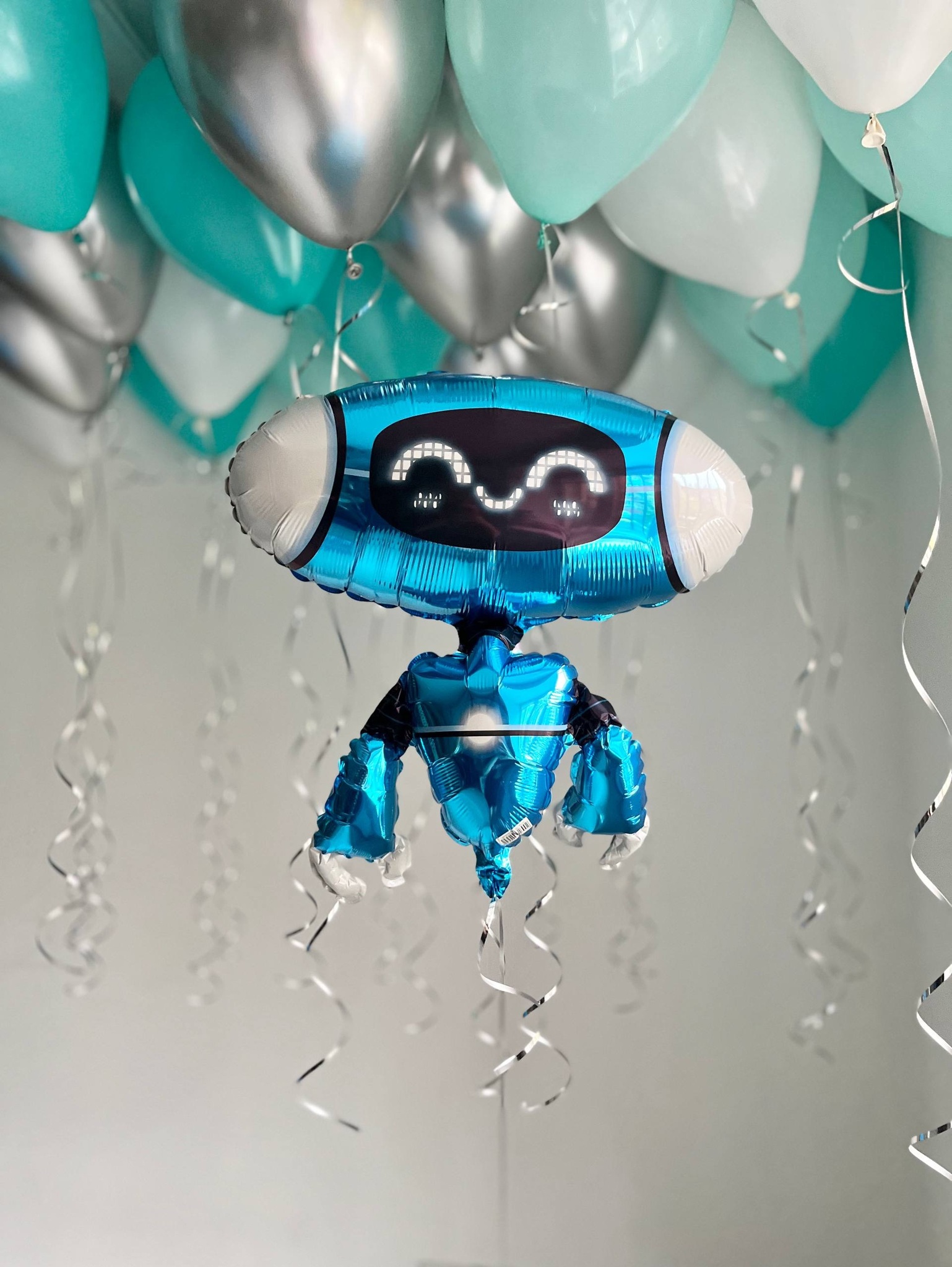 Воздушные шары для мальчика Робот бирюза/тиффани/белый/серебро №3824