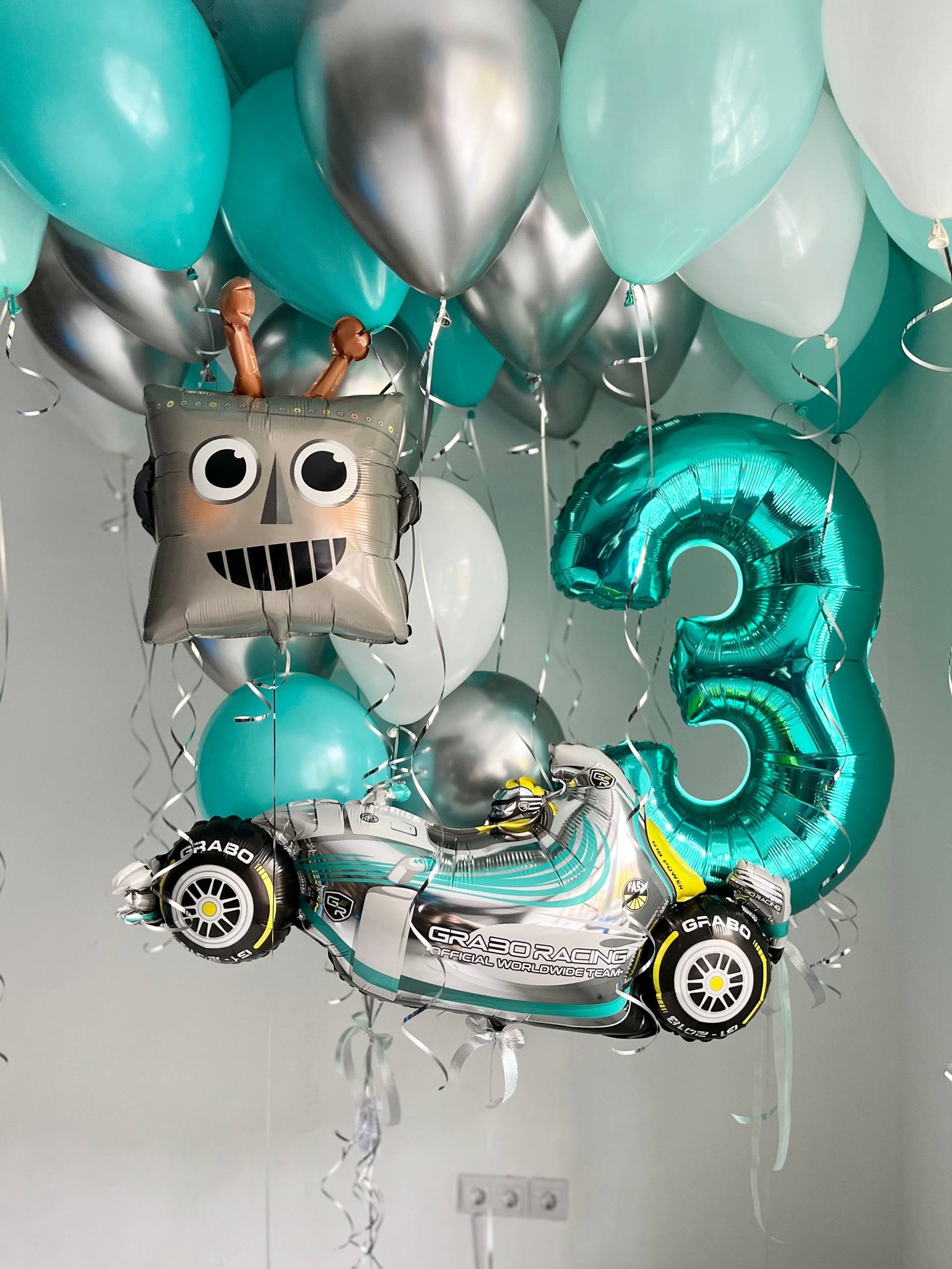 Воздушные шары для мальчика бирюза/тиффани робот/машина №3825