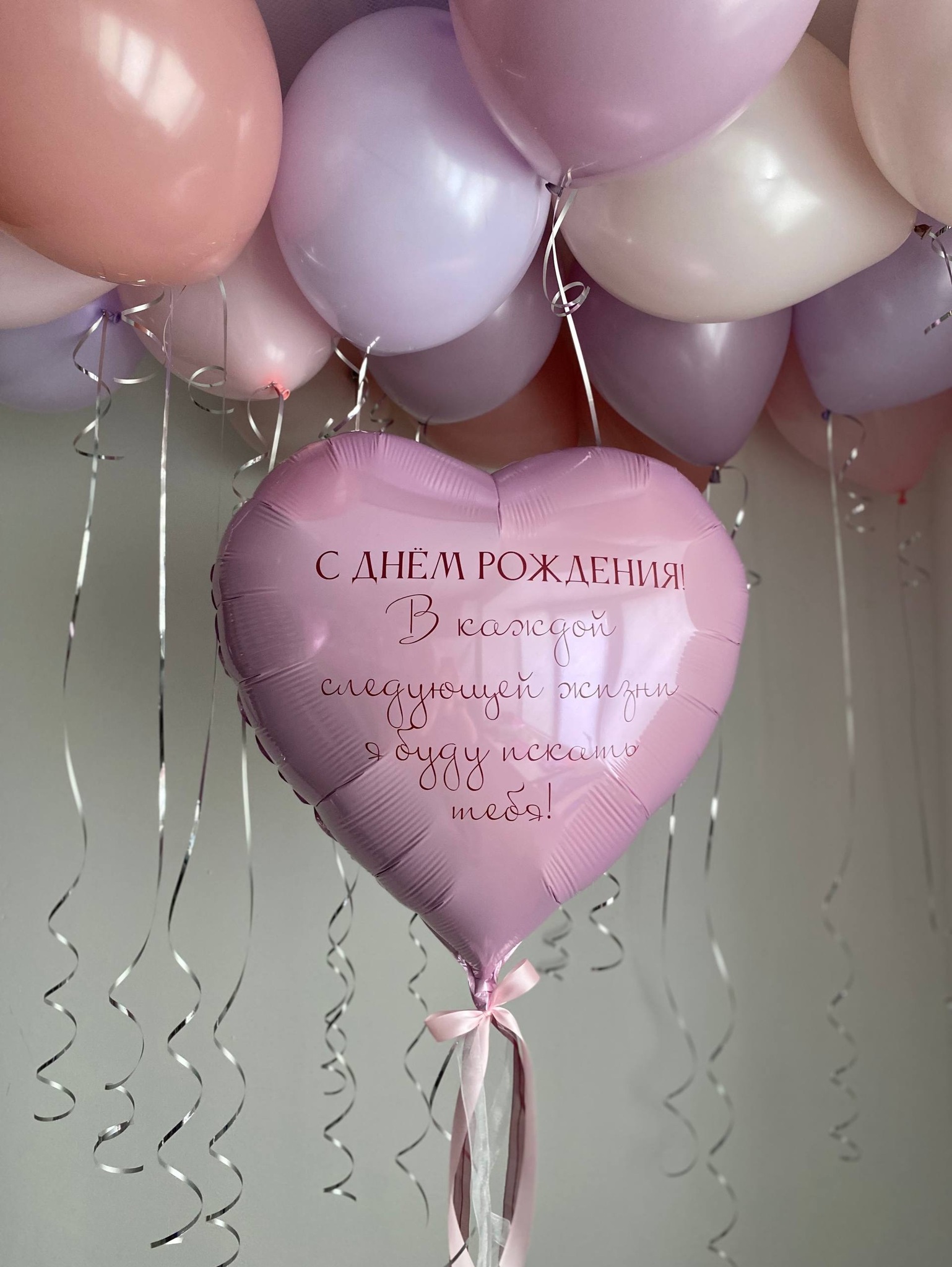 Воздушные шары на день рождение девушке сиреневый/пудра/розовый №3867