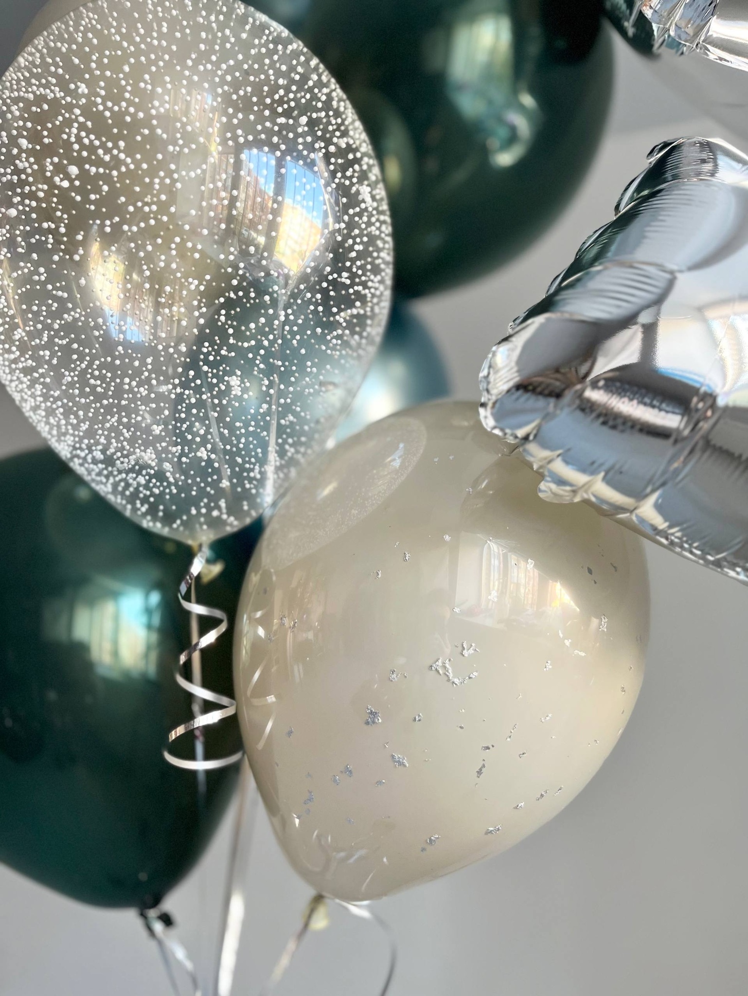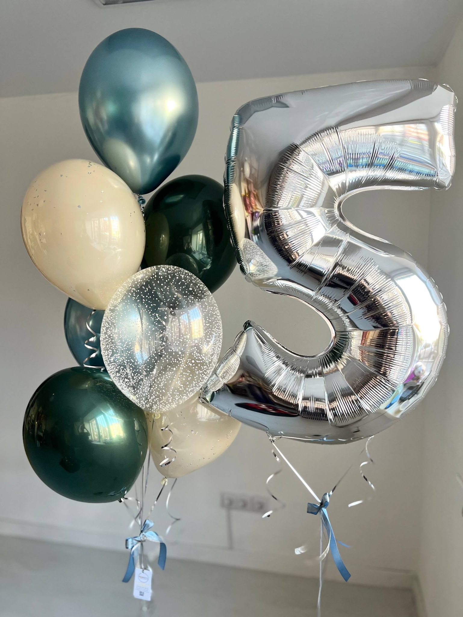 Набор стильных шаров на день рождение/пятилетие серебро/сини/зеленый №3872