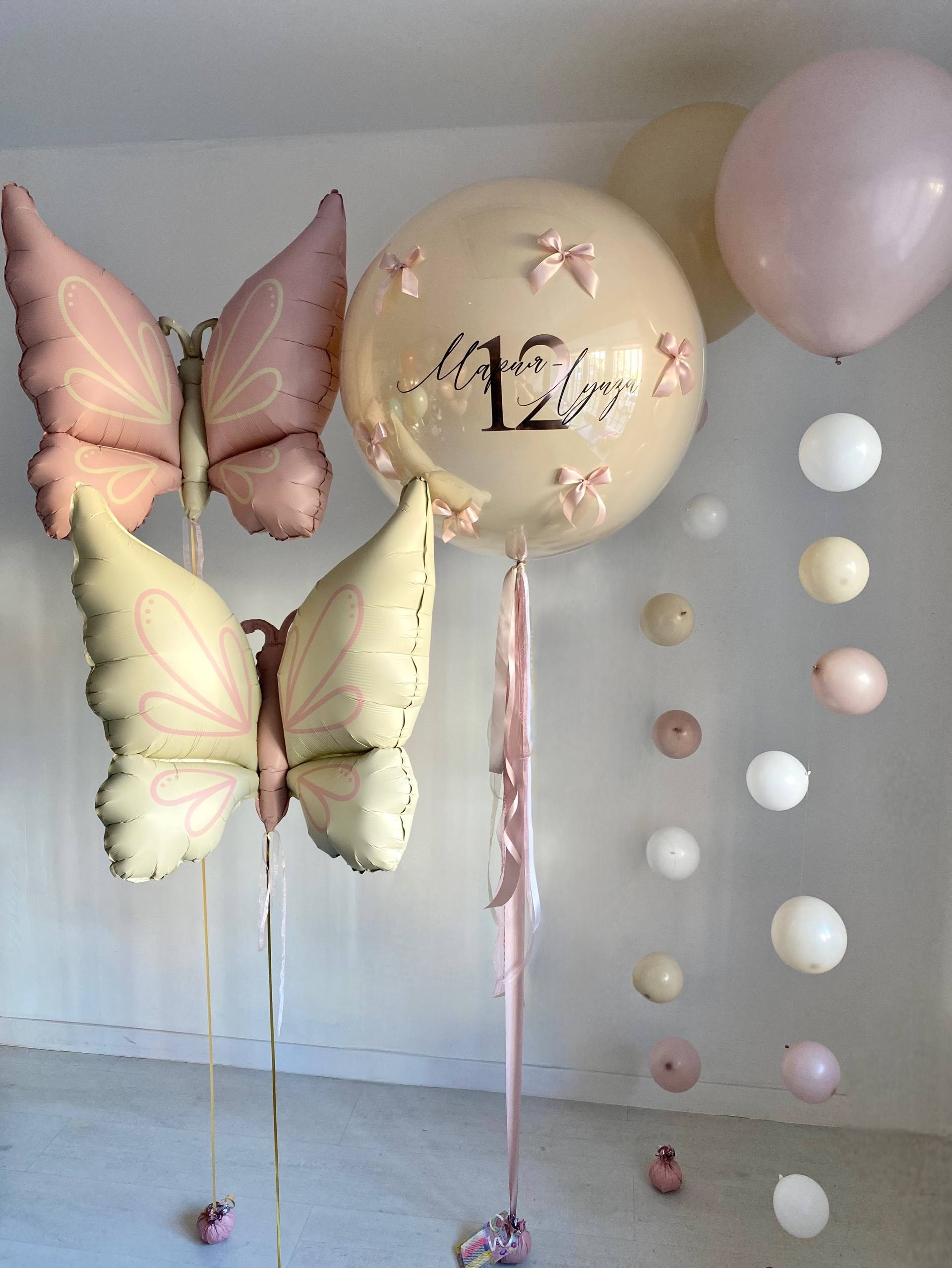 Воздушные шары для девочки песок/белый/пыльная роза бабочки сатин №3886