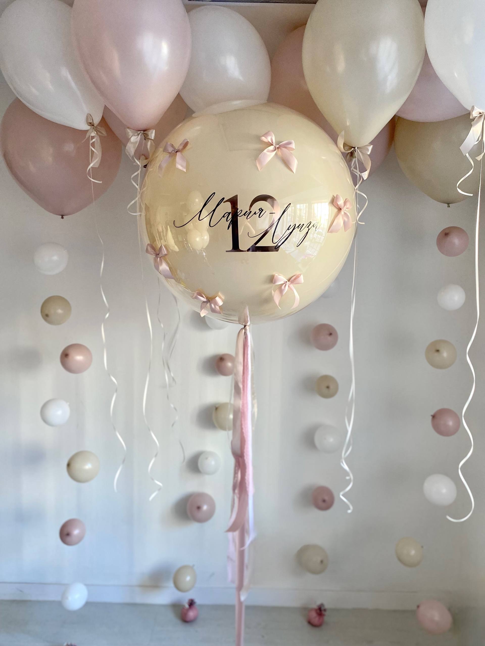 Стильные шары с бантиками стеклянный шар белый/песок/пыльная роза №3887