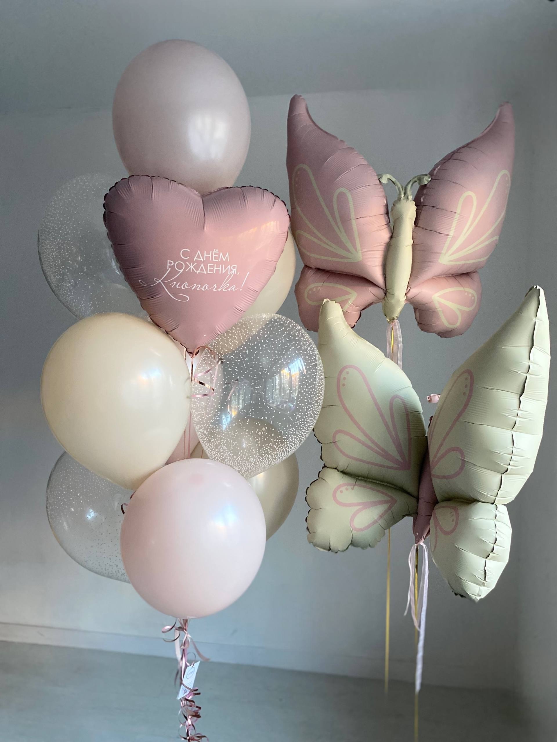 Воздушные шары нюдовые для девушки пыльная роза/песок стильные бабочки №3890