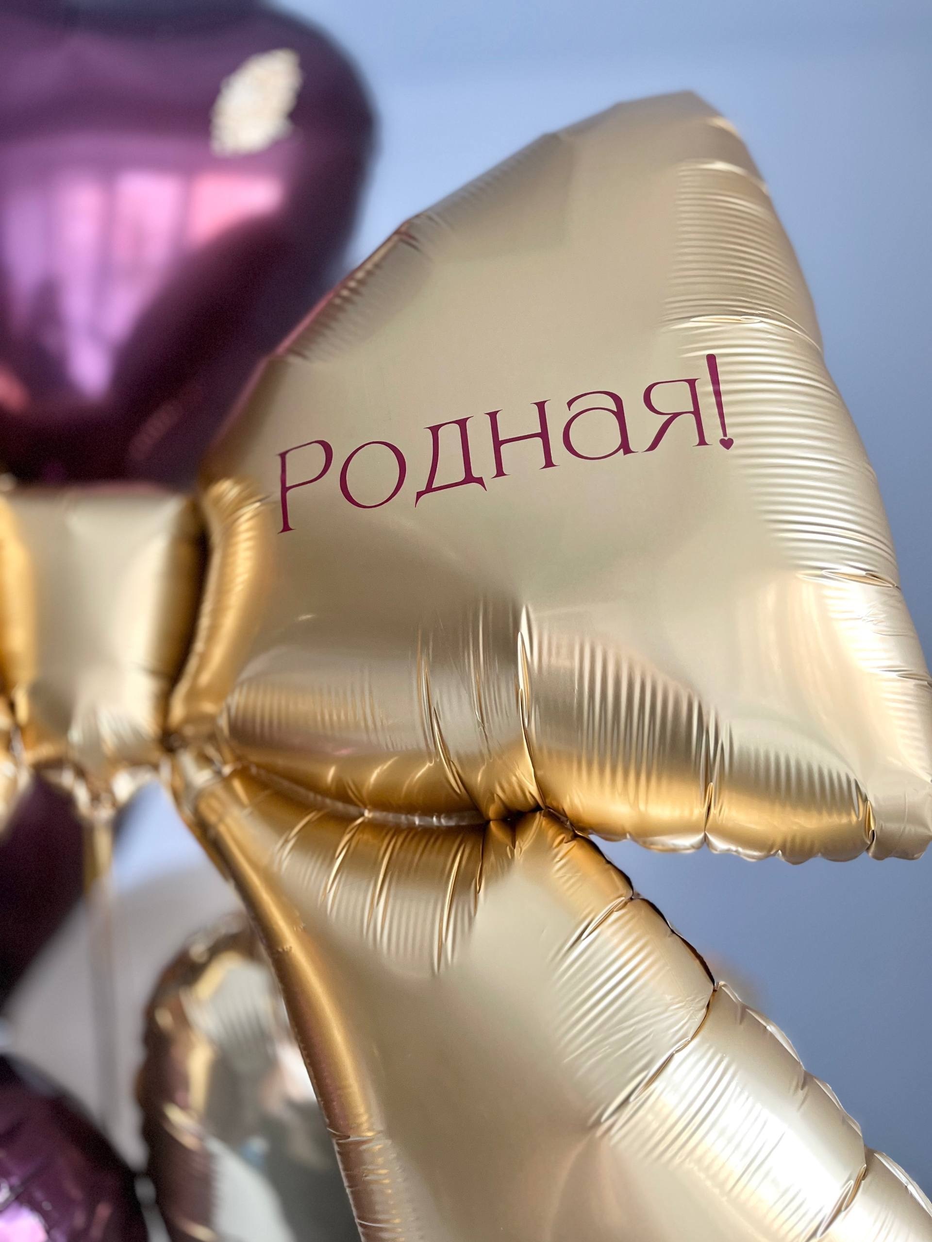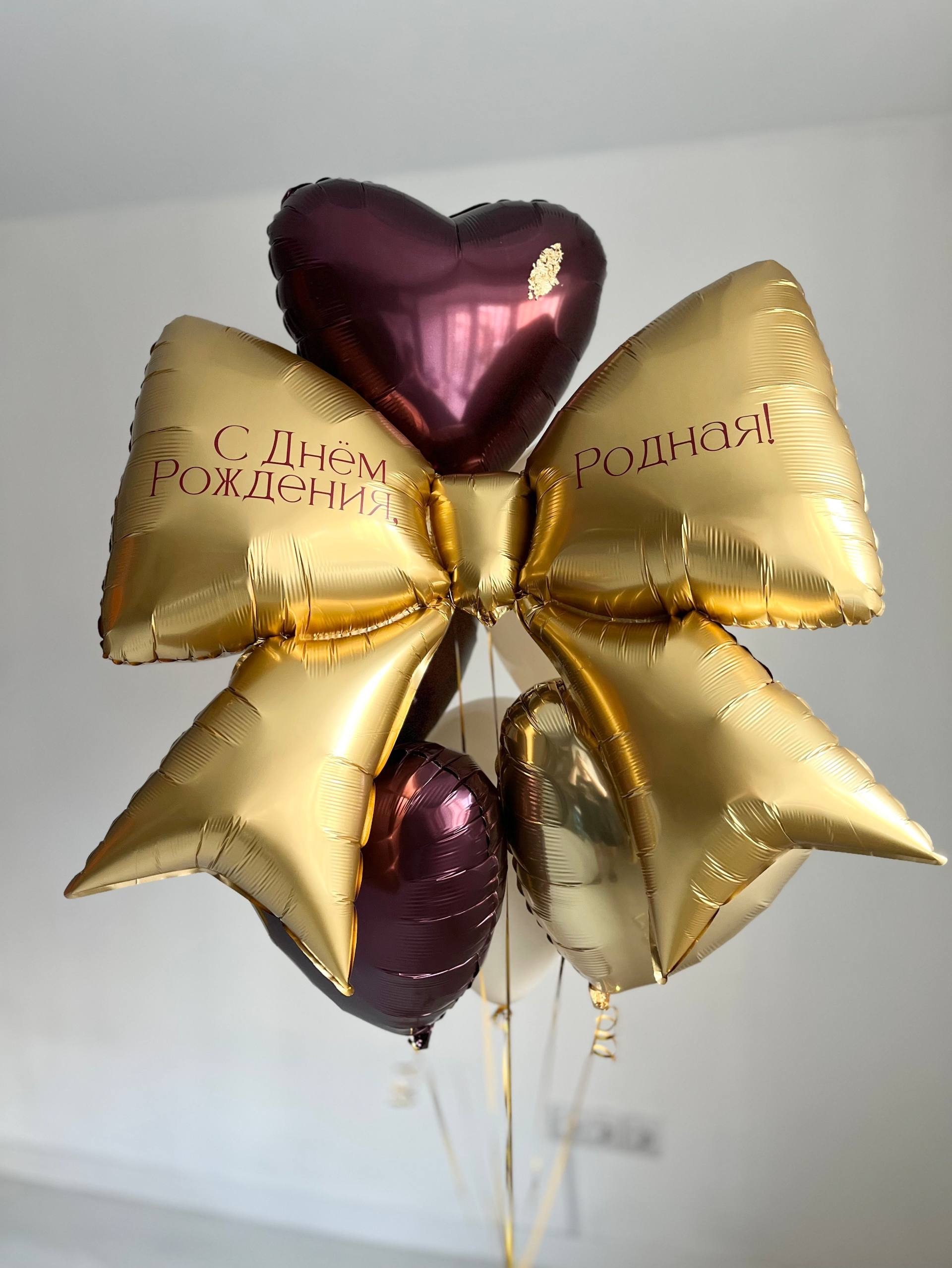 Воздушные шары на день рождение бант золото золото/бордовый №3894