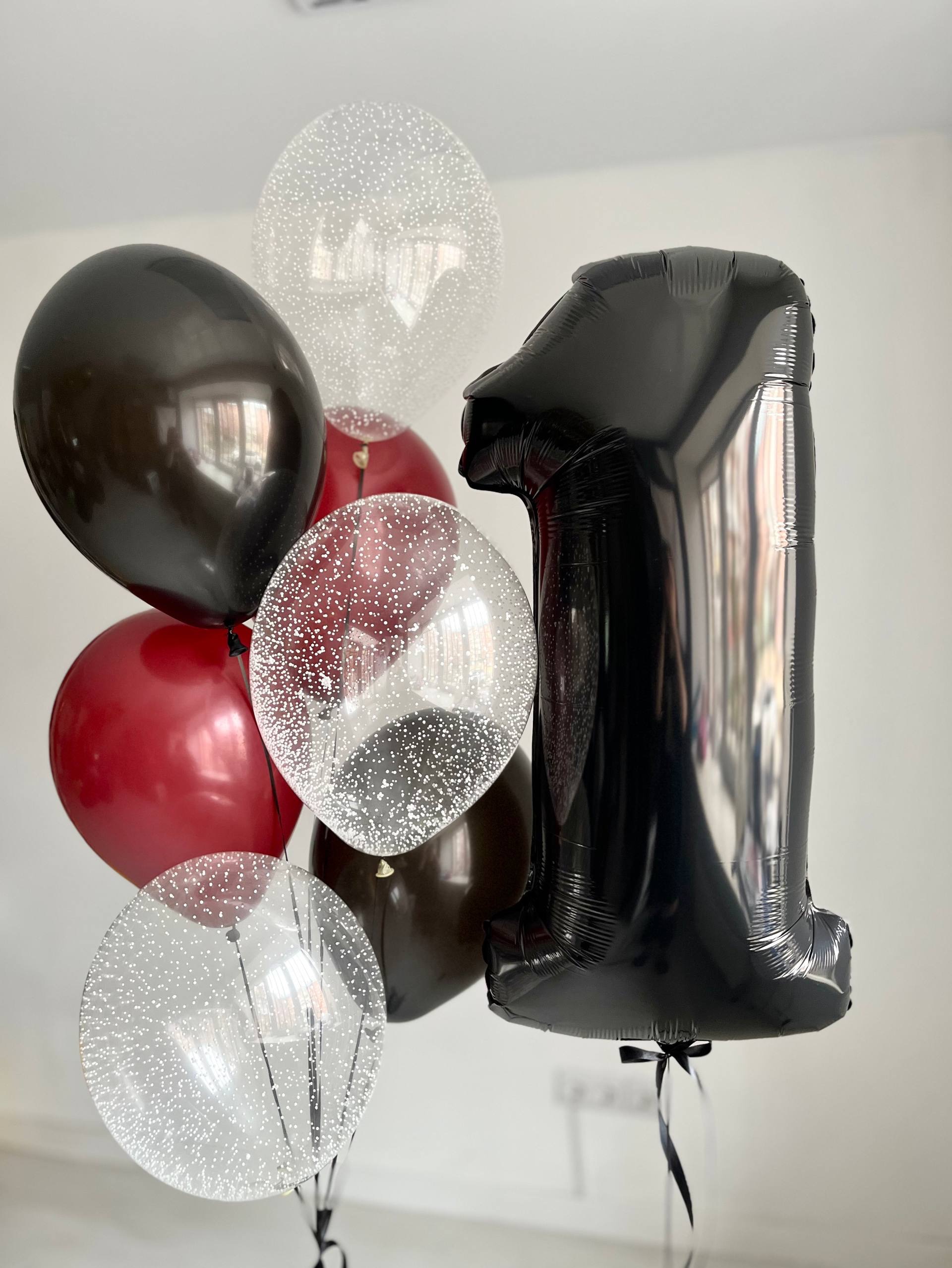 Воздушные шары на годовасие черный/марсало №3911
