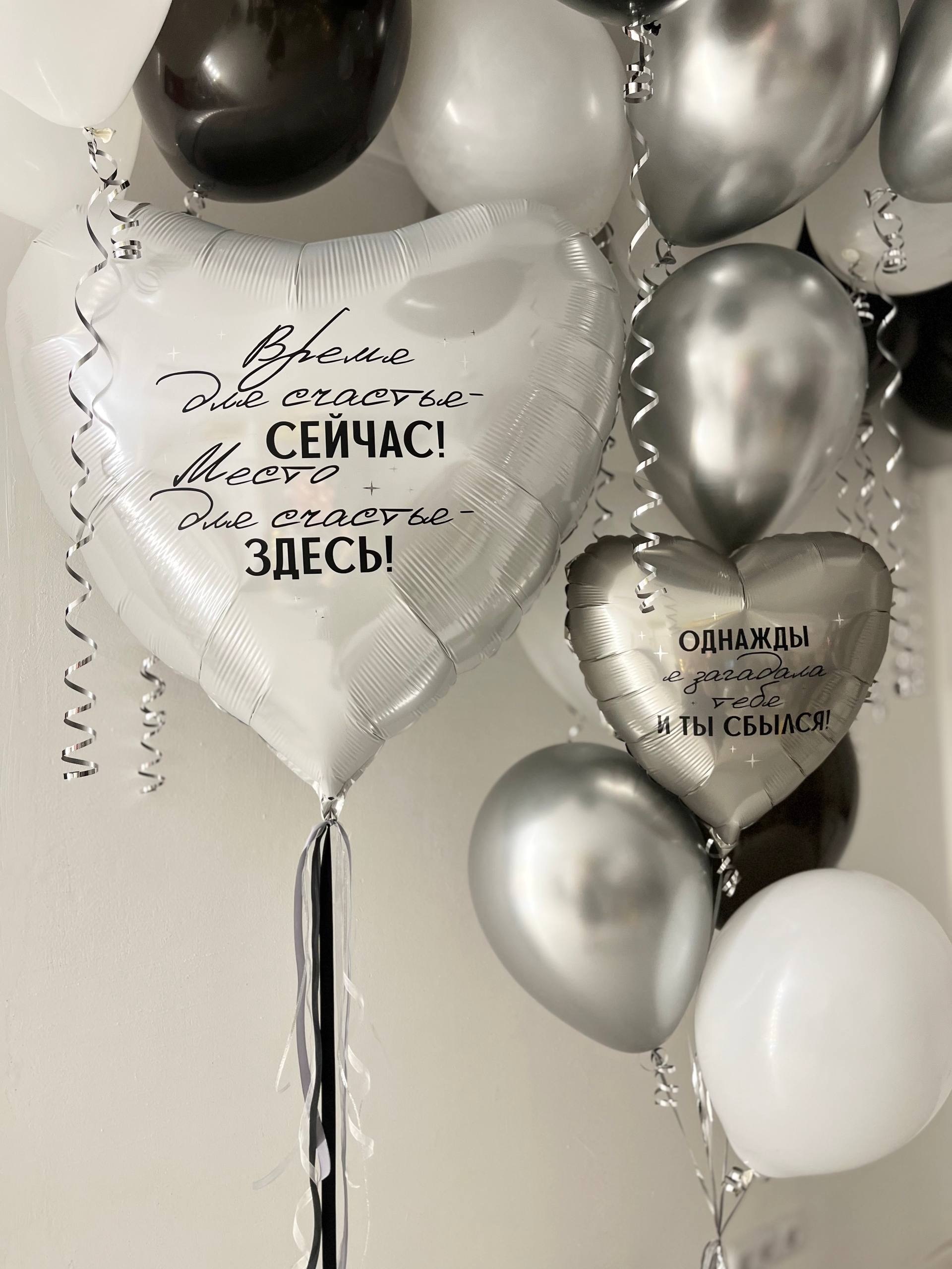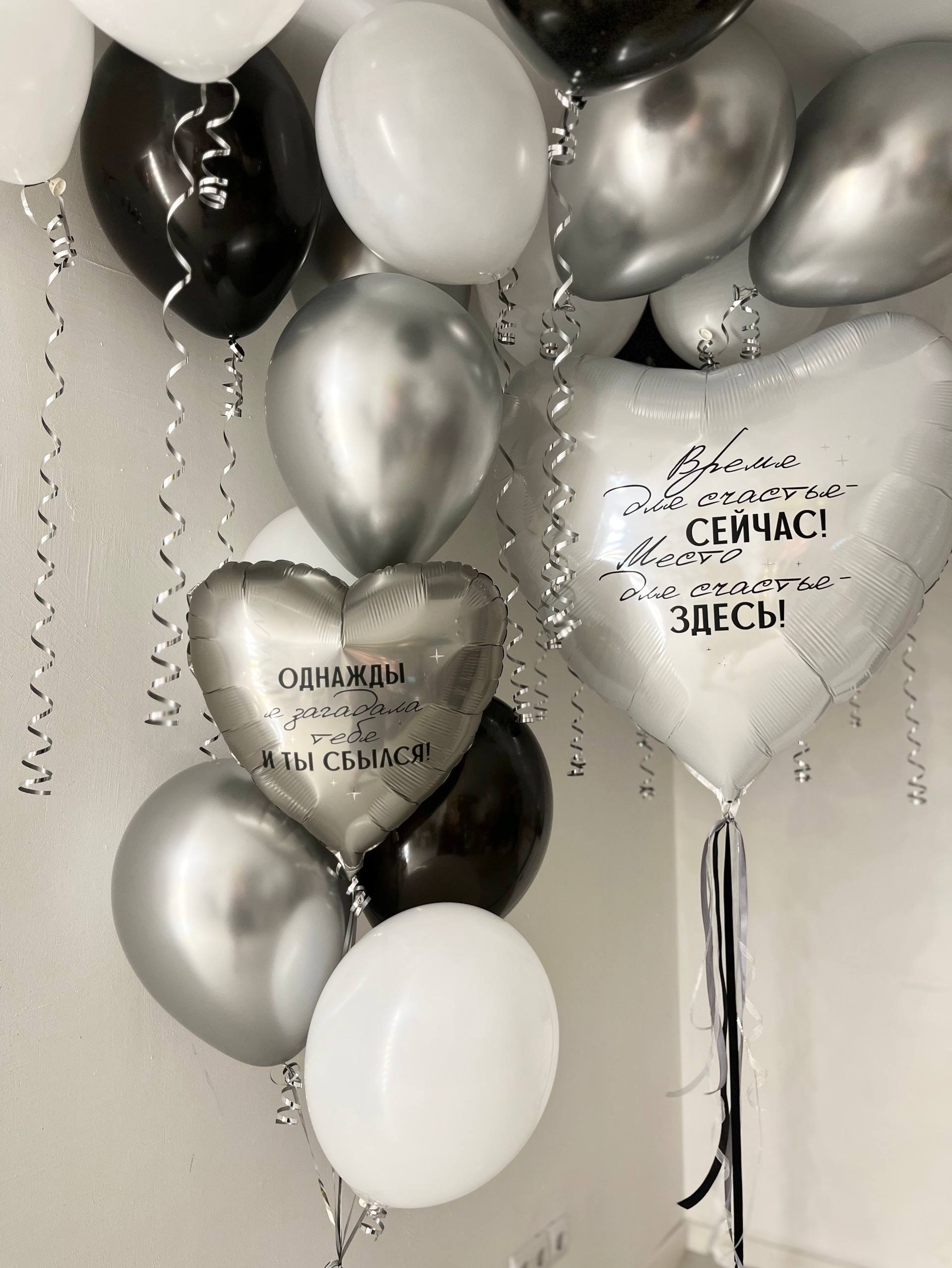 Воздушные шары на день рождения мужа белый/серебро/черный №4084