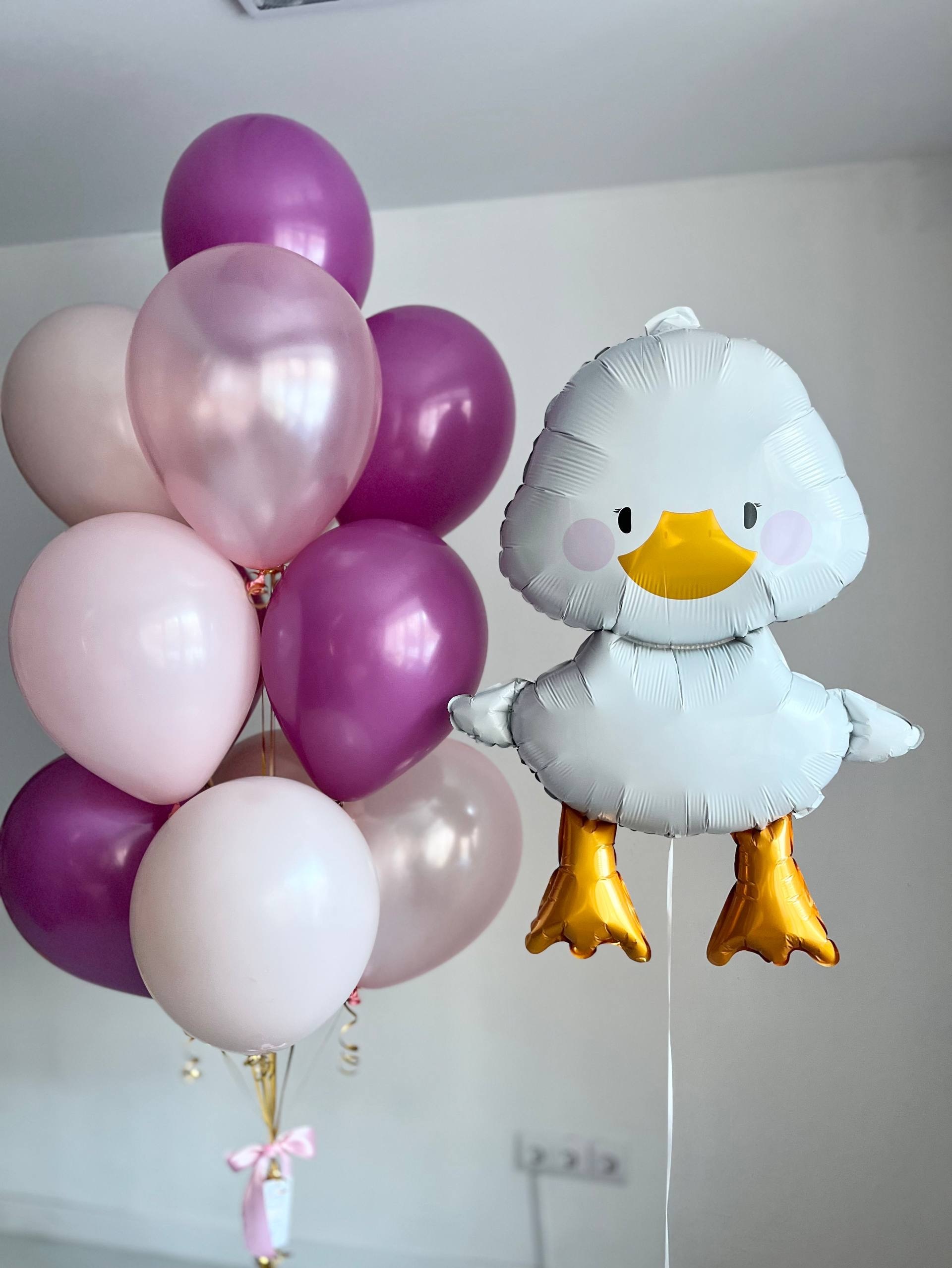 Воздушные шары Гусь обнимусь розовый/архидея №4135