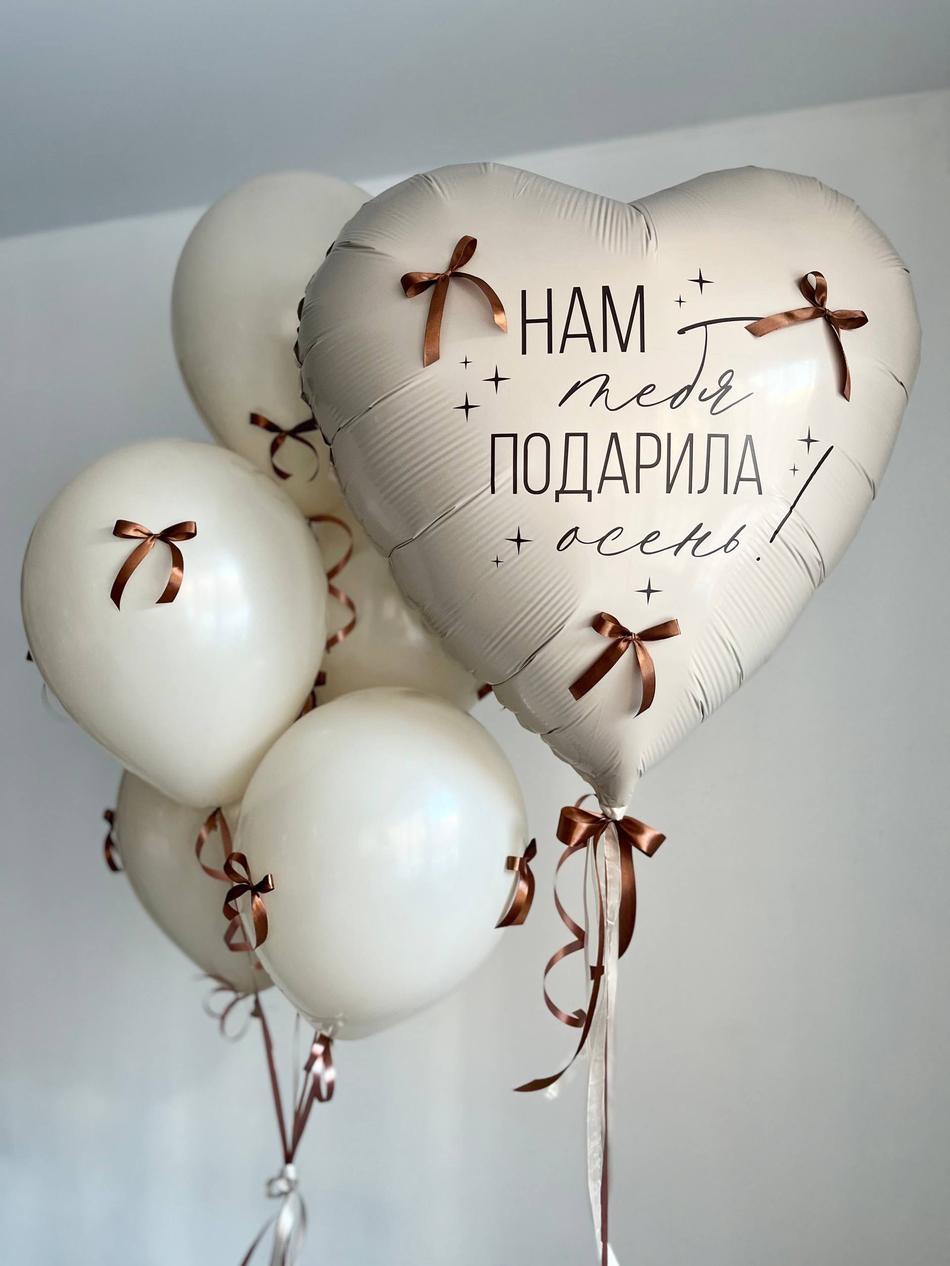 Воздушные шары для девушки Нам тебя подарила осень песок/шоколад бантики №4138