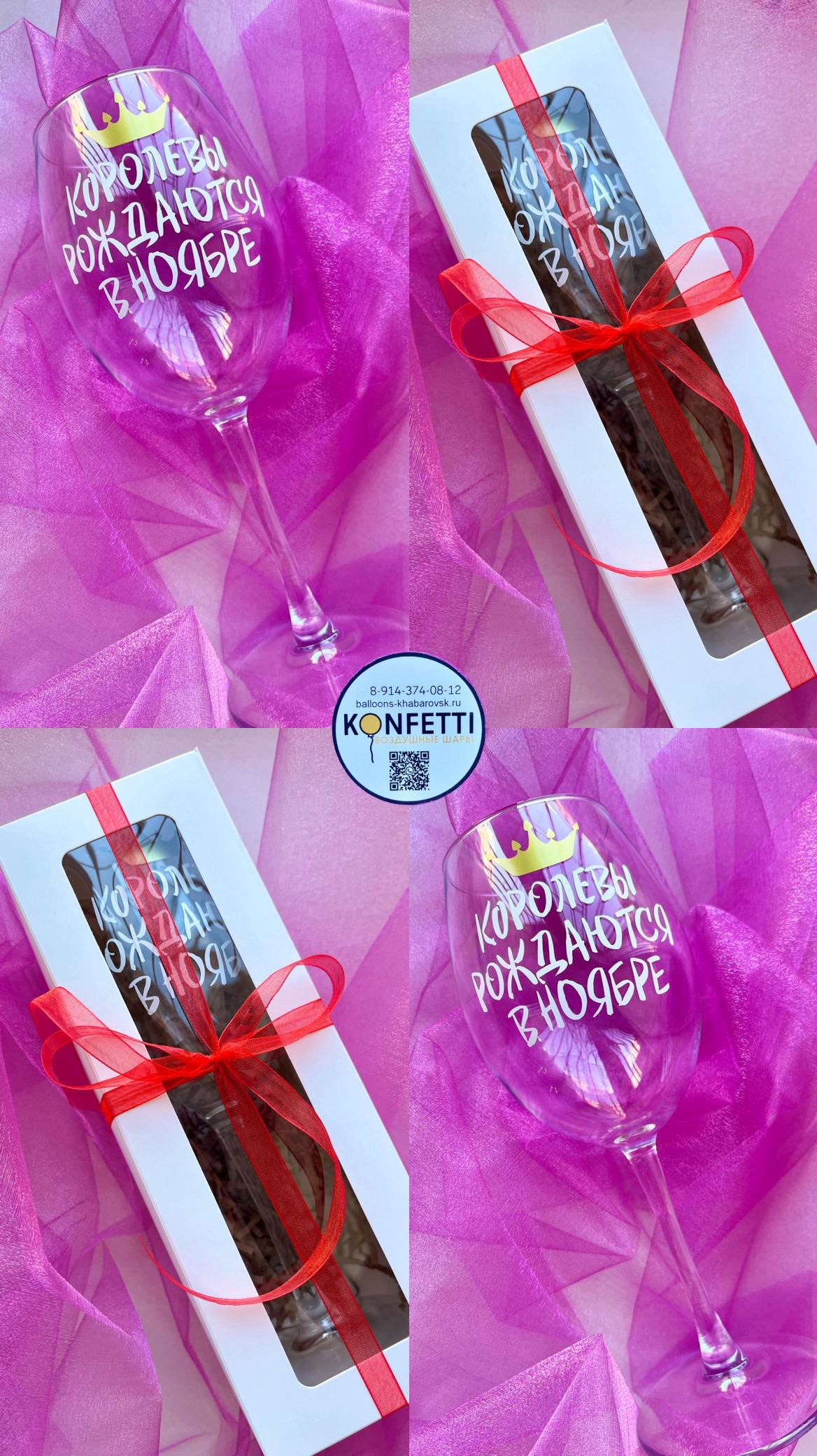 Бокал с индивидуальной надписью в коробке Королевы рождаются в ноябре №4139