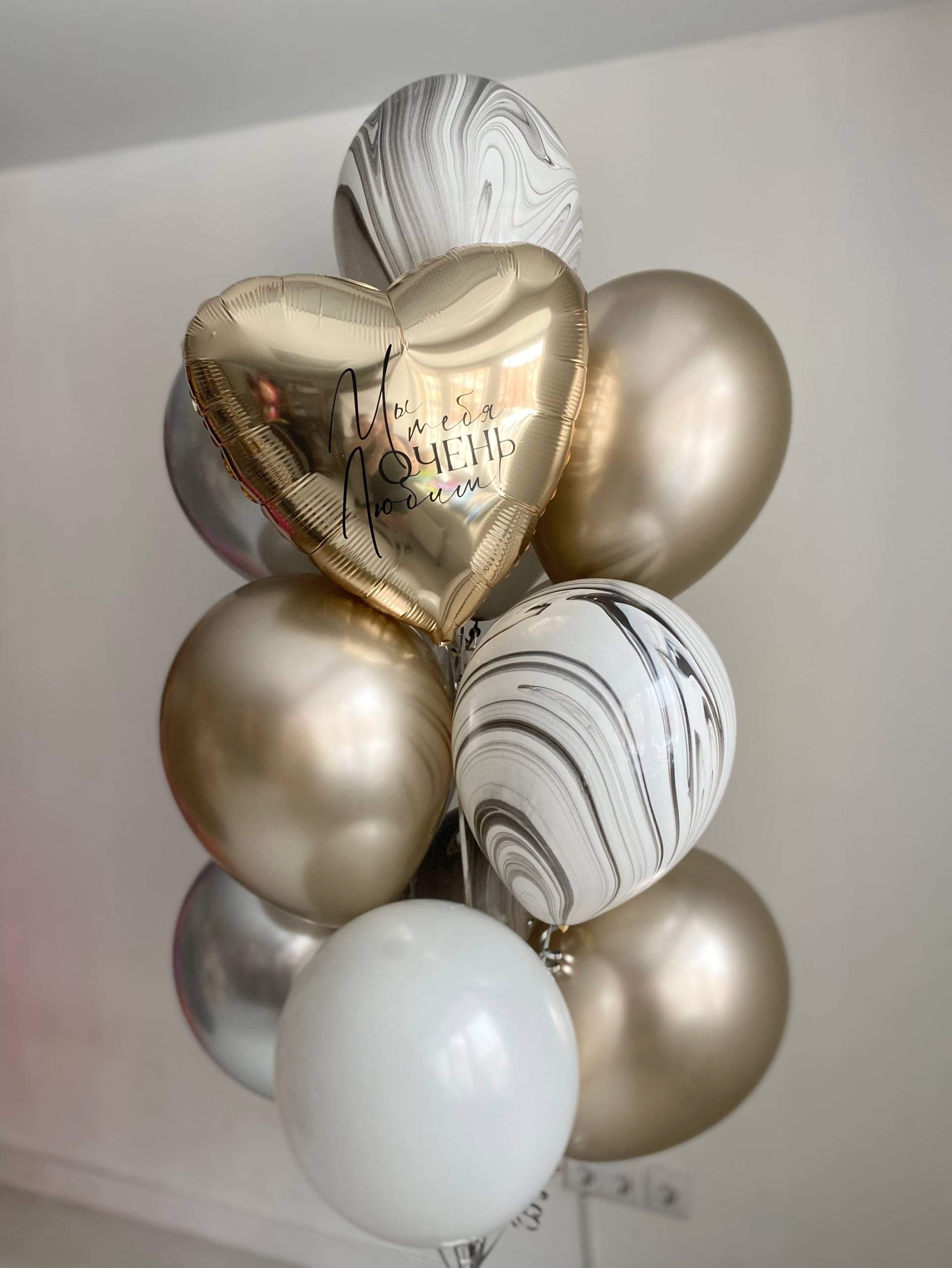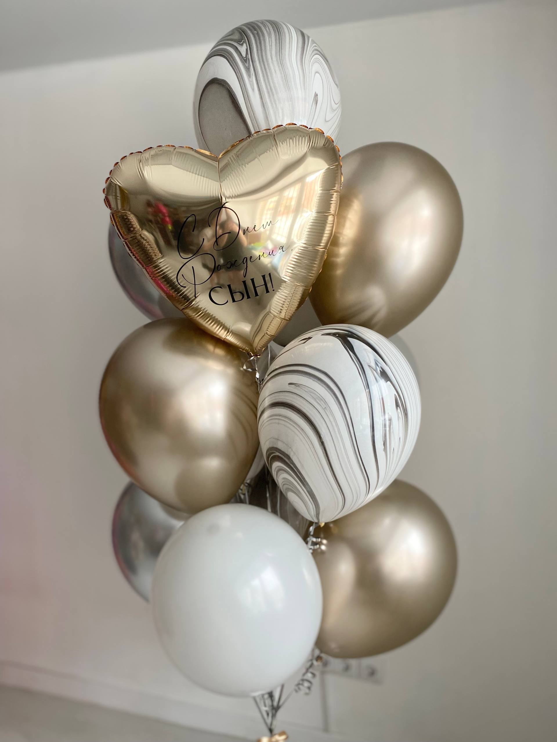 Воздушные шары для сына шампань/серебро/белый агат черно белый №4213
