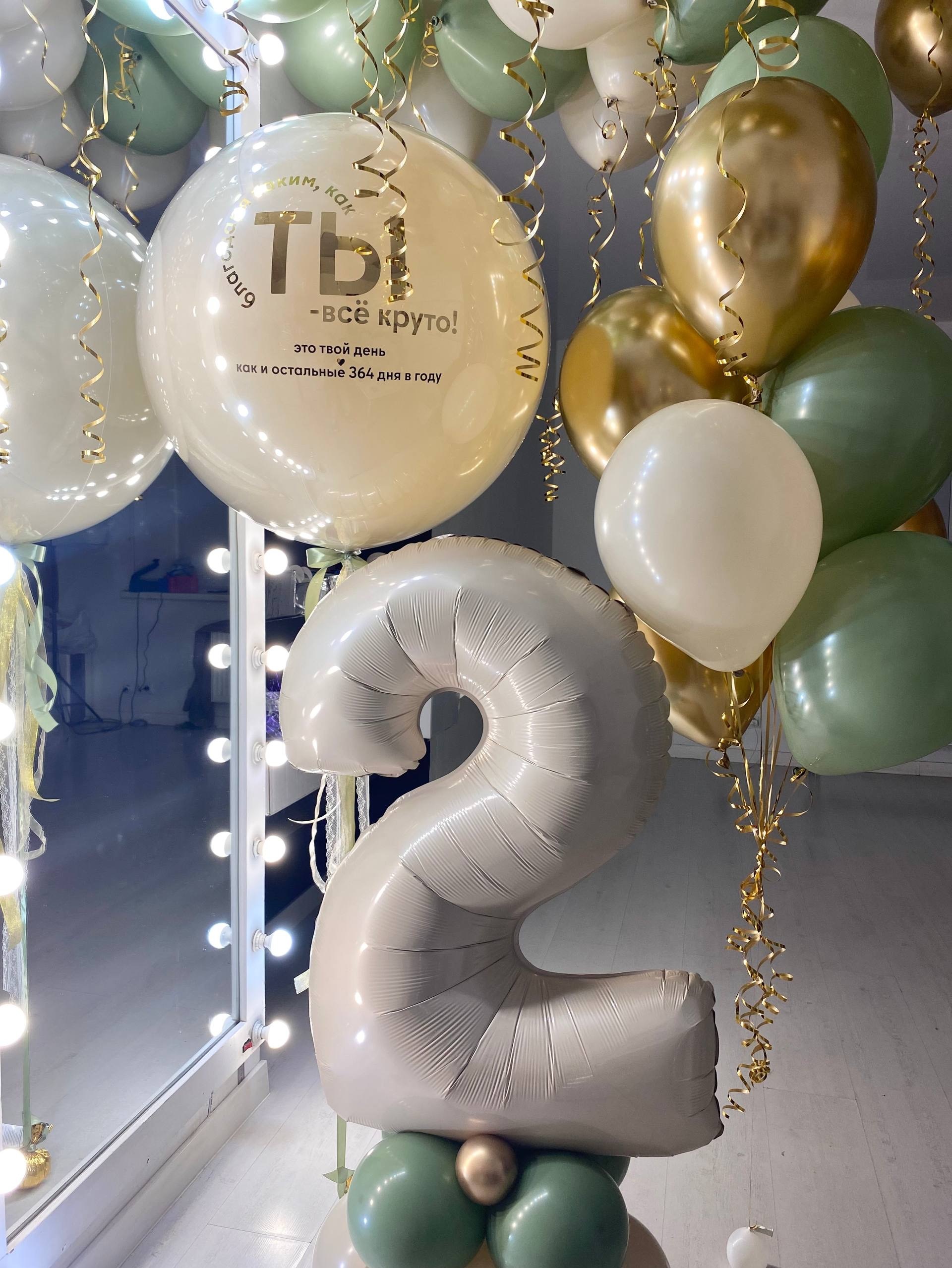 Воздушные шары большой двойной шар эвкалипт/песок/хром золото №4221