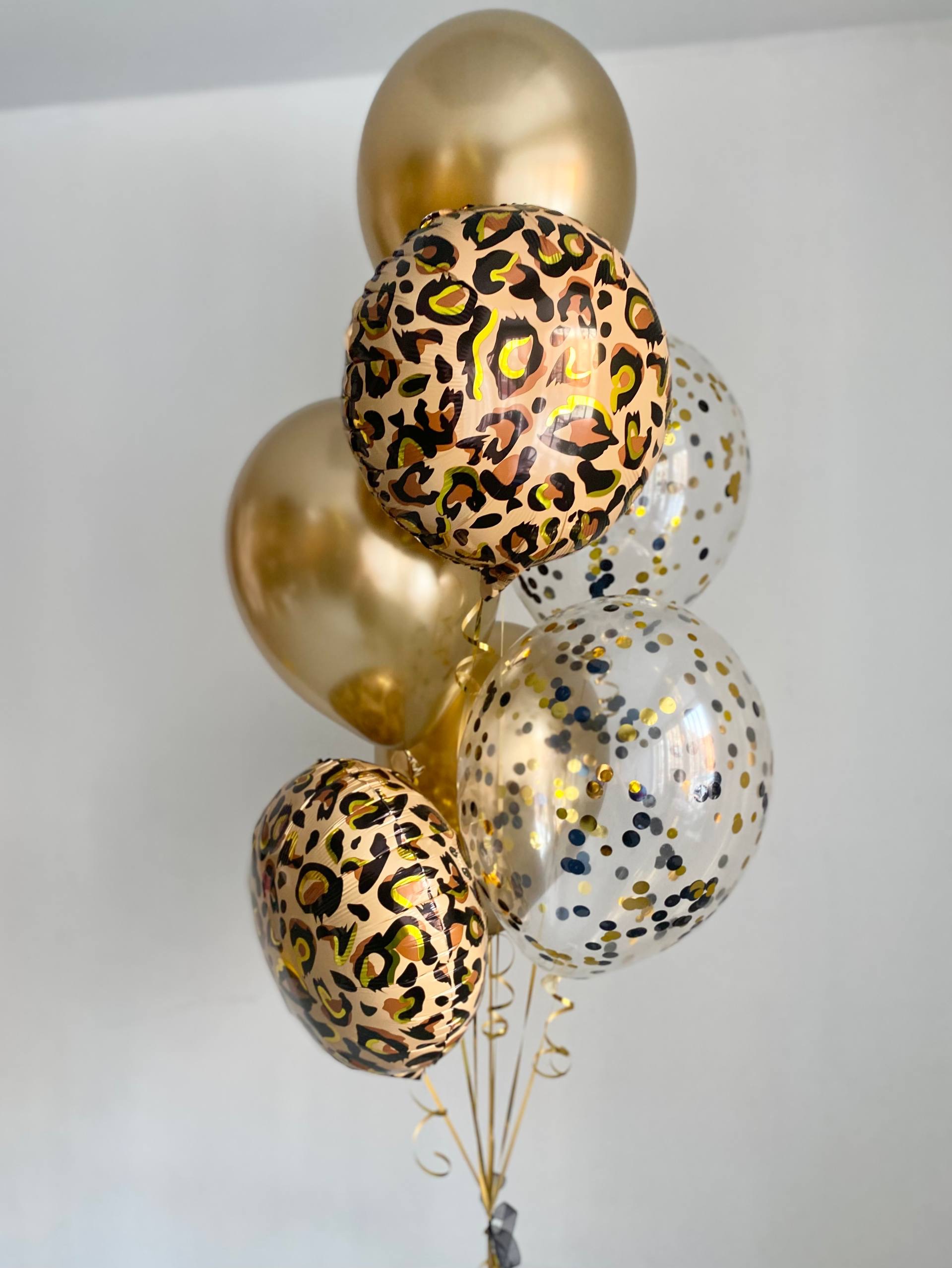 Воздушные шары леопард хром золото/конфетти №4222