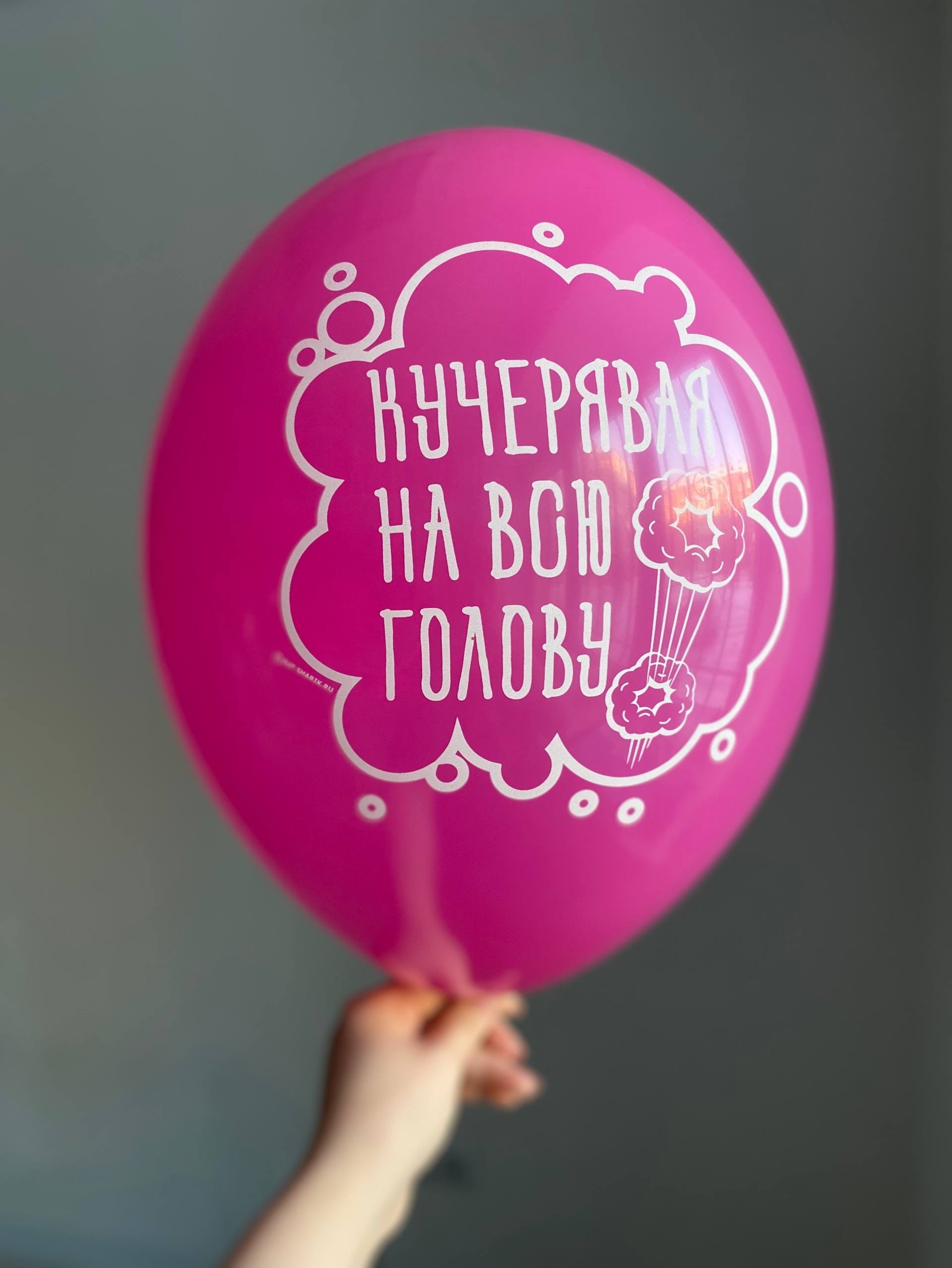 Воздушный шар с надписью фуксия «кучерявая на всю голову» 35см ПАЛИТРА №4279