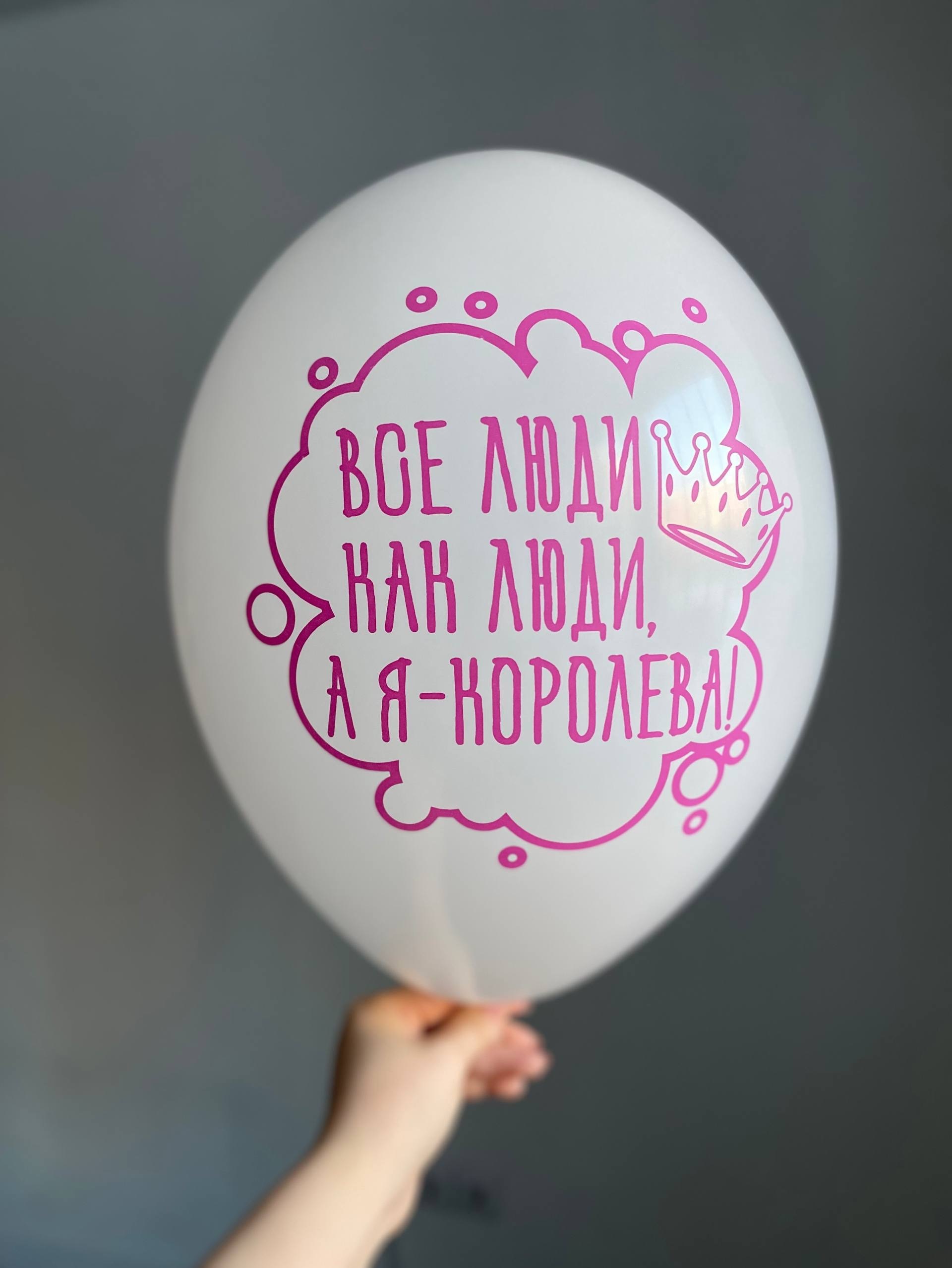 Воздушный шар с надписью белый/фуксия «все люди как люди, я а-королева» 35см ПАЛИТРА №4280