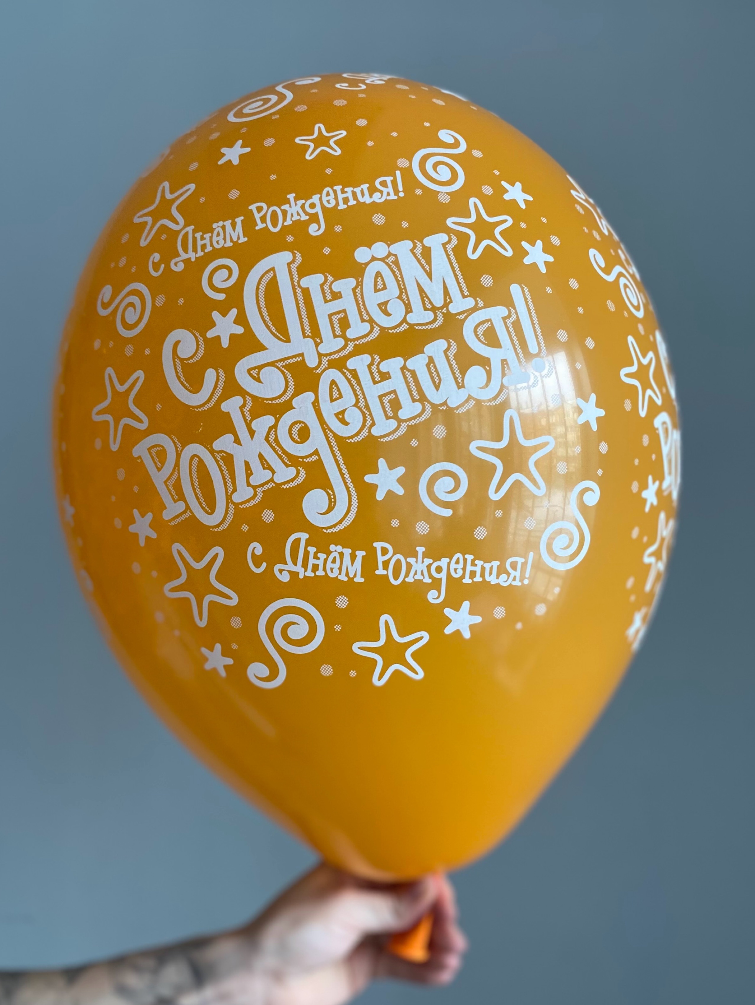 Воздушный шар с надписью "С Днем Рождения. Звезды", с 5-ти ст. рис. 35см ПАЛИТРА №4313