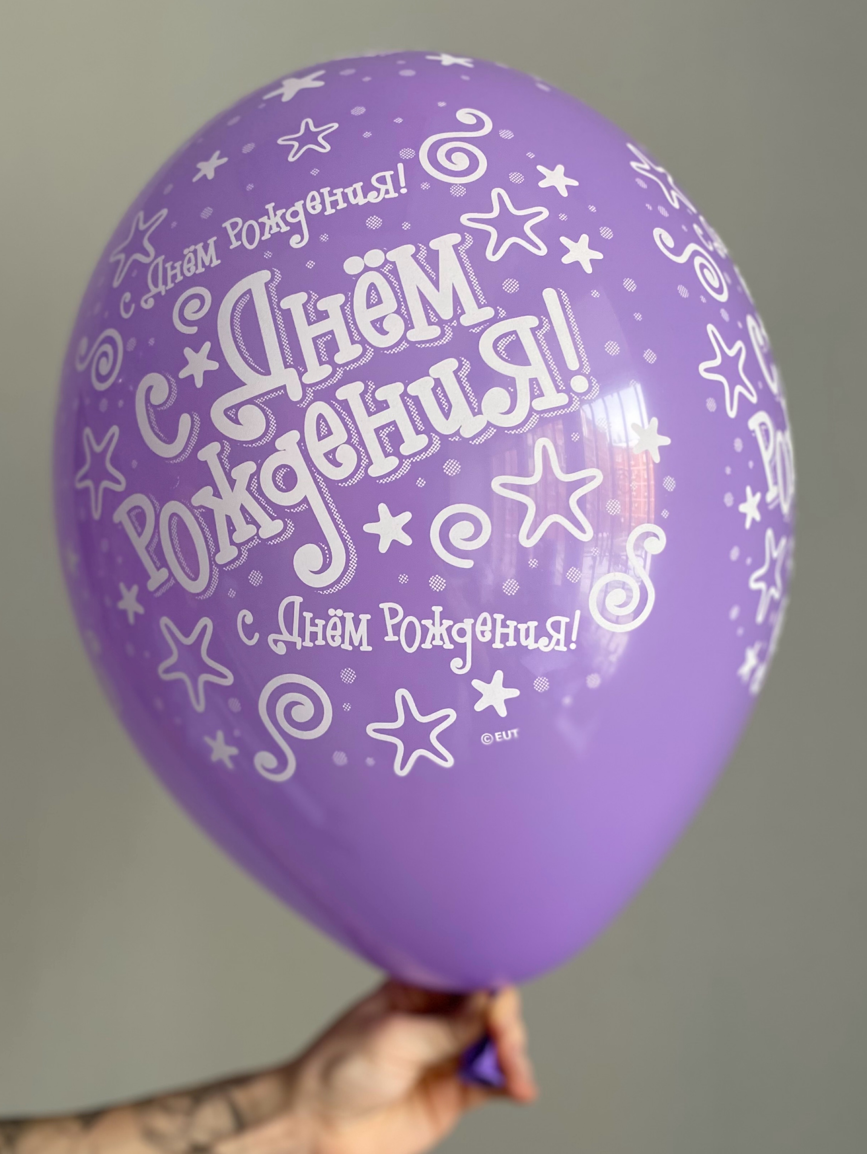 Воздушный шар с надписью "С Днем Рождения. Звезды", с 5-ти ст. рис. 35см ПАЛИТРА №4318