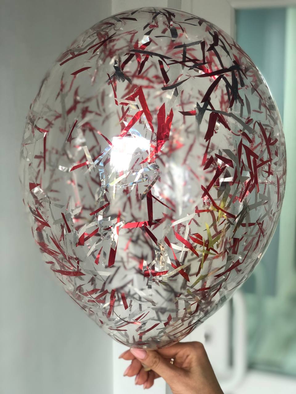 Воздушный шар с наполнением конфетти полоски красный ПАЛИТРА №4152