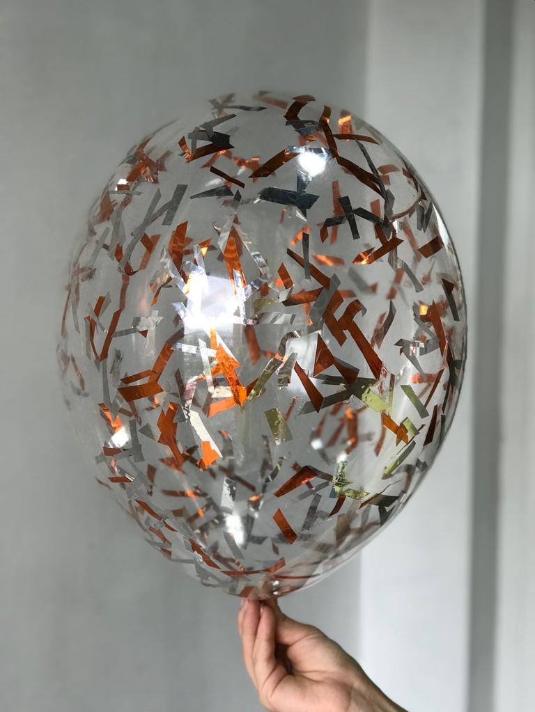 Воздушный шар с наполнением конфетти полоски оранжевый ПАЛИТРА №4153