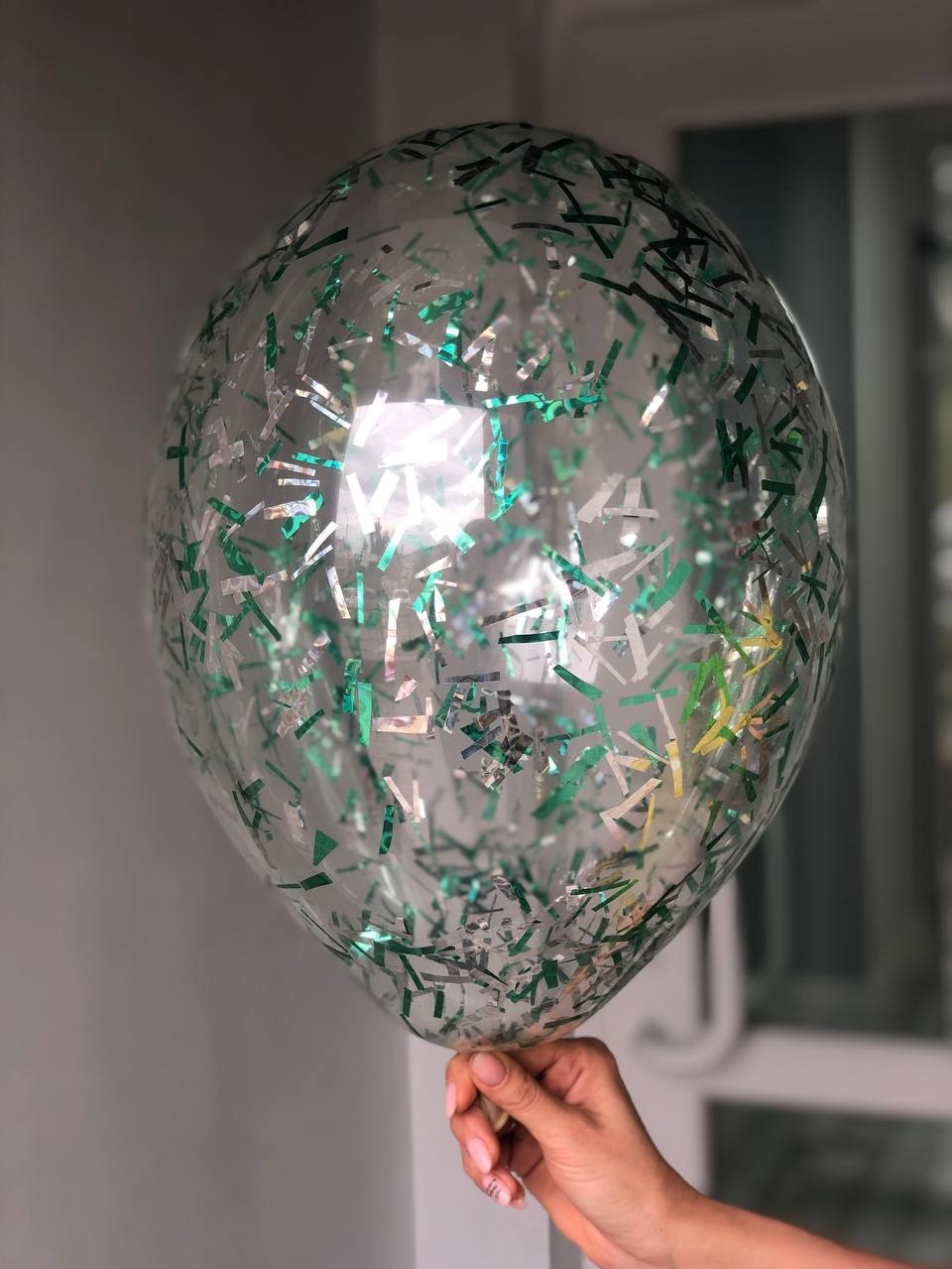 Воздушный шар с наполнением конфетти полоски зеленые ПАЛИТРА №4154