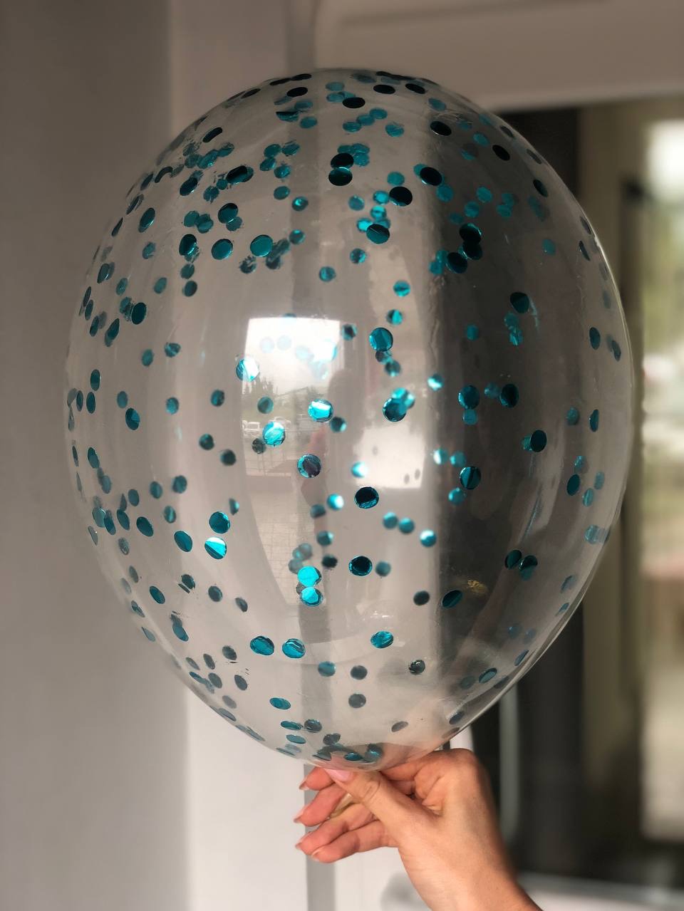 Воздушный шар с наполнением конфетти круглое бирюзовое ПАЛИТРА №4173