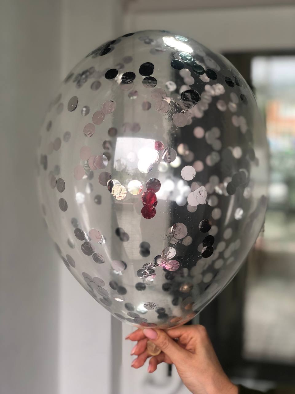 Воздушный шар с наполнением конфетти круглое серебряное ПАЛИТРА №4179