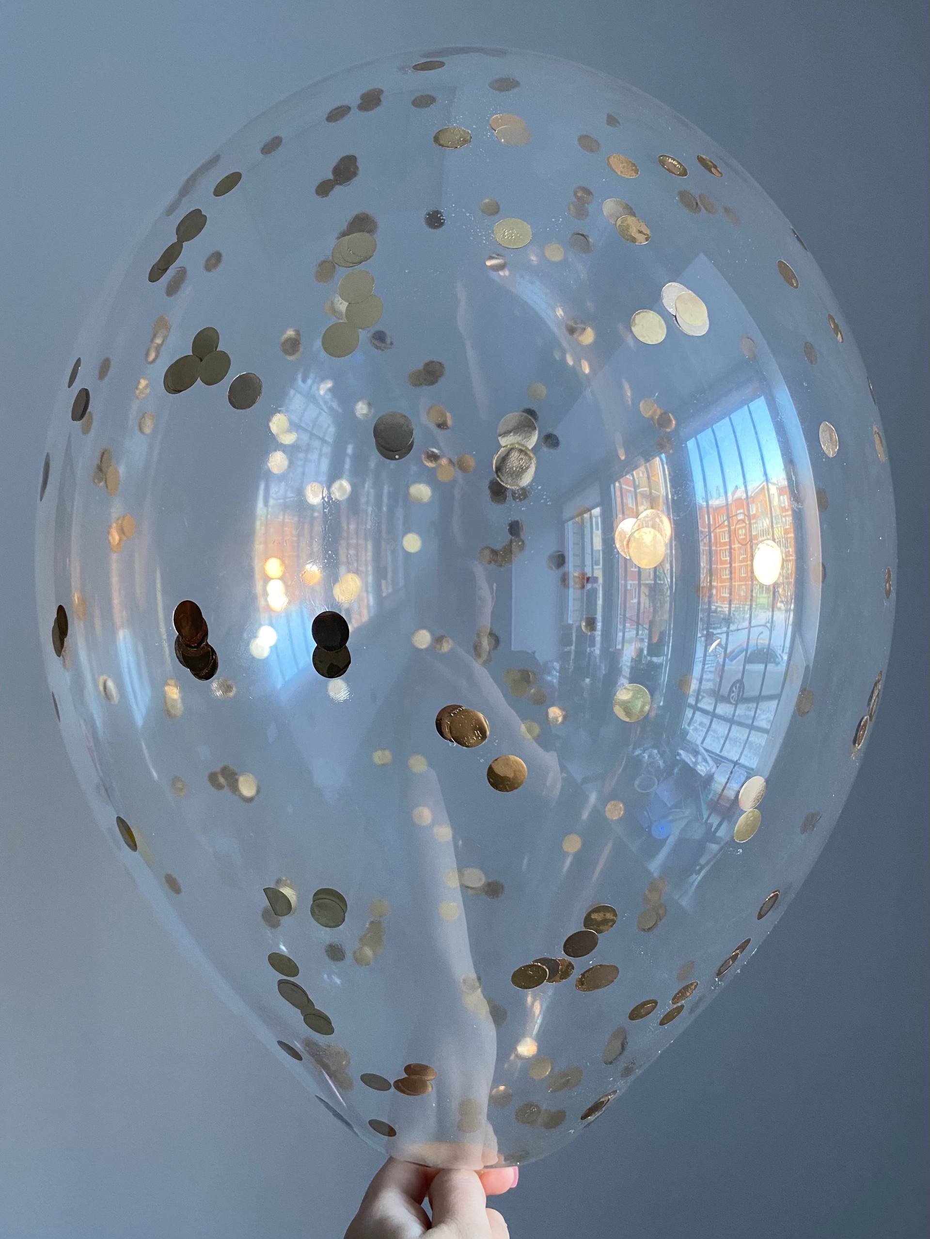 Воздушный шар с наполнением конфетти микс круглое золото/шампань ПАЛИТРА №4328