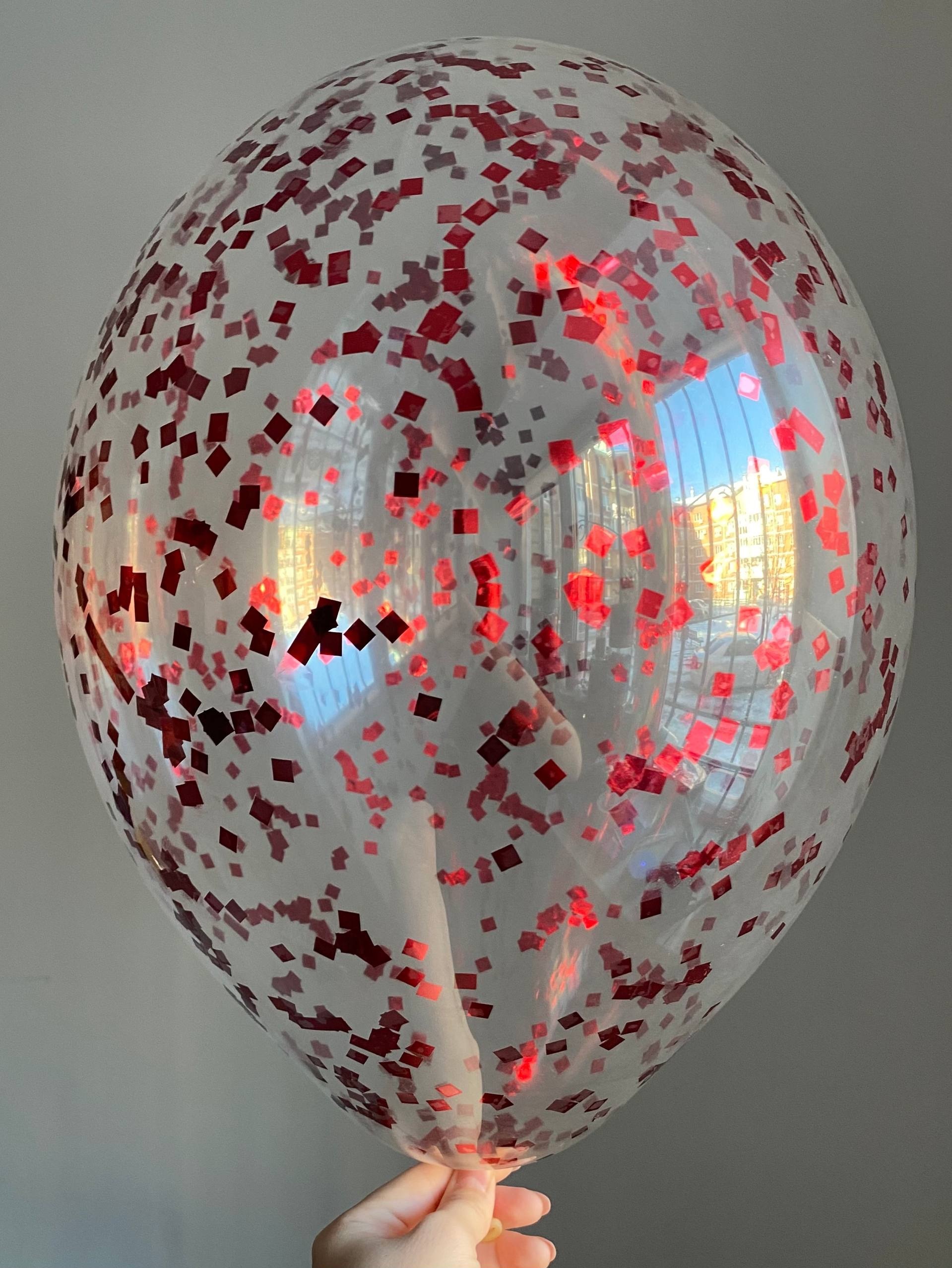 Воздушный шар с наполнением конфетти квадрат красный ПАЛИТРА №4333