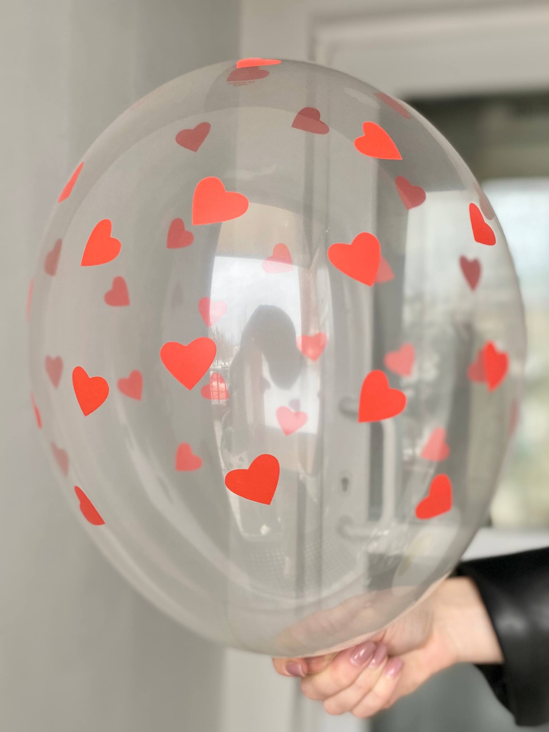 Воздушный шар с рисунком сердца красные 35см ПАЛИТРА №4346