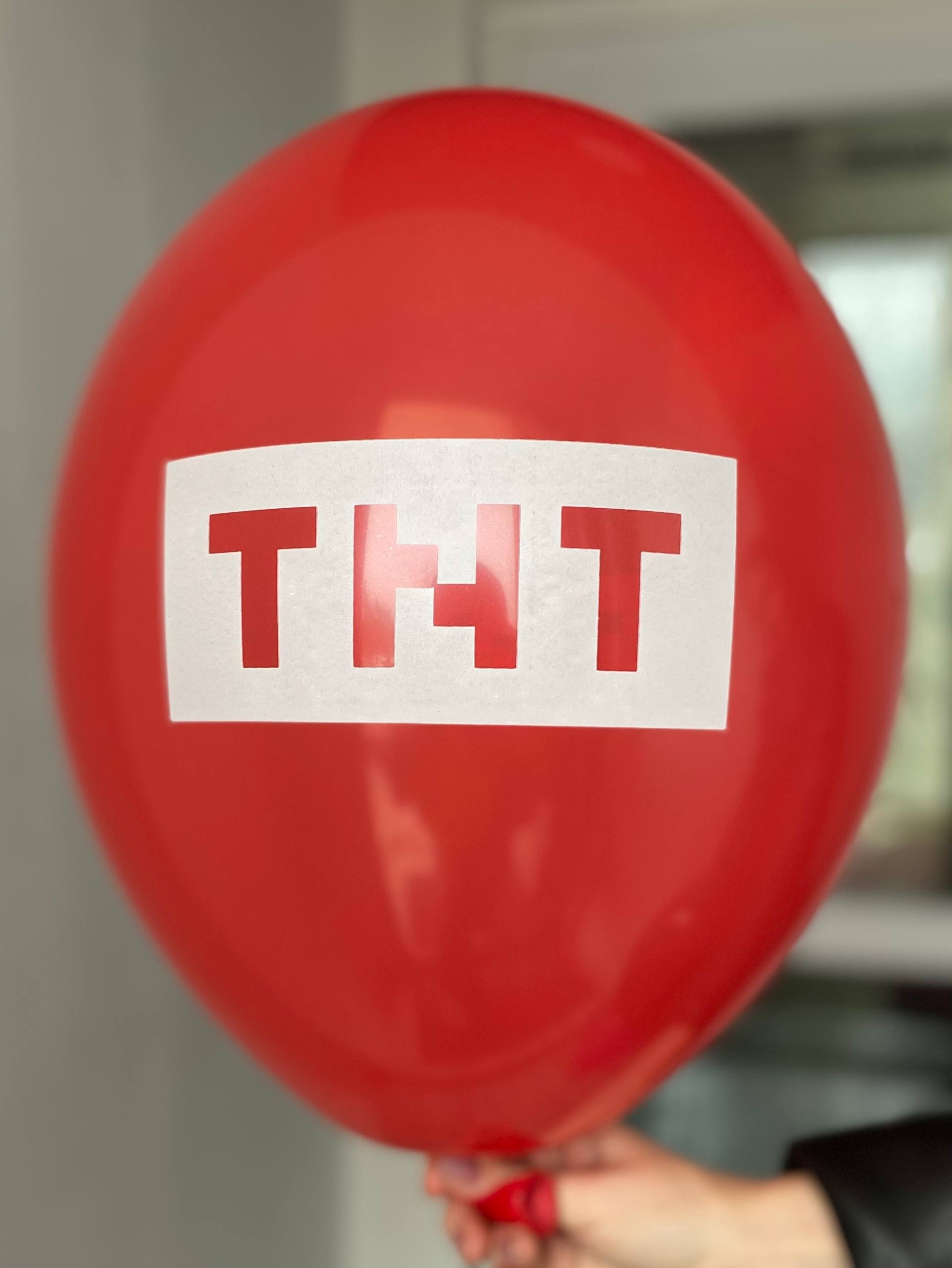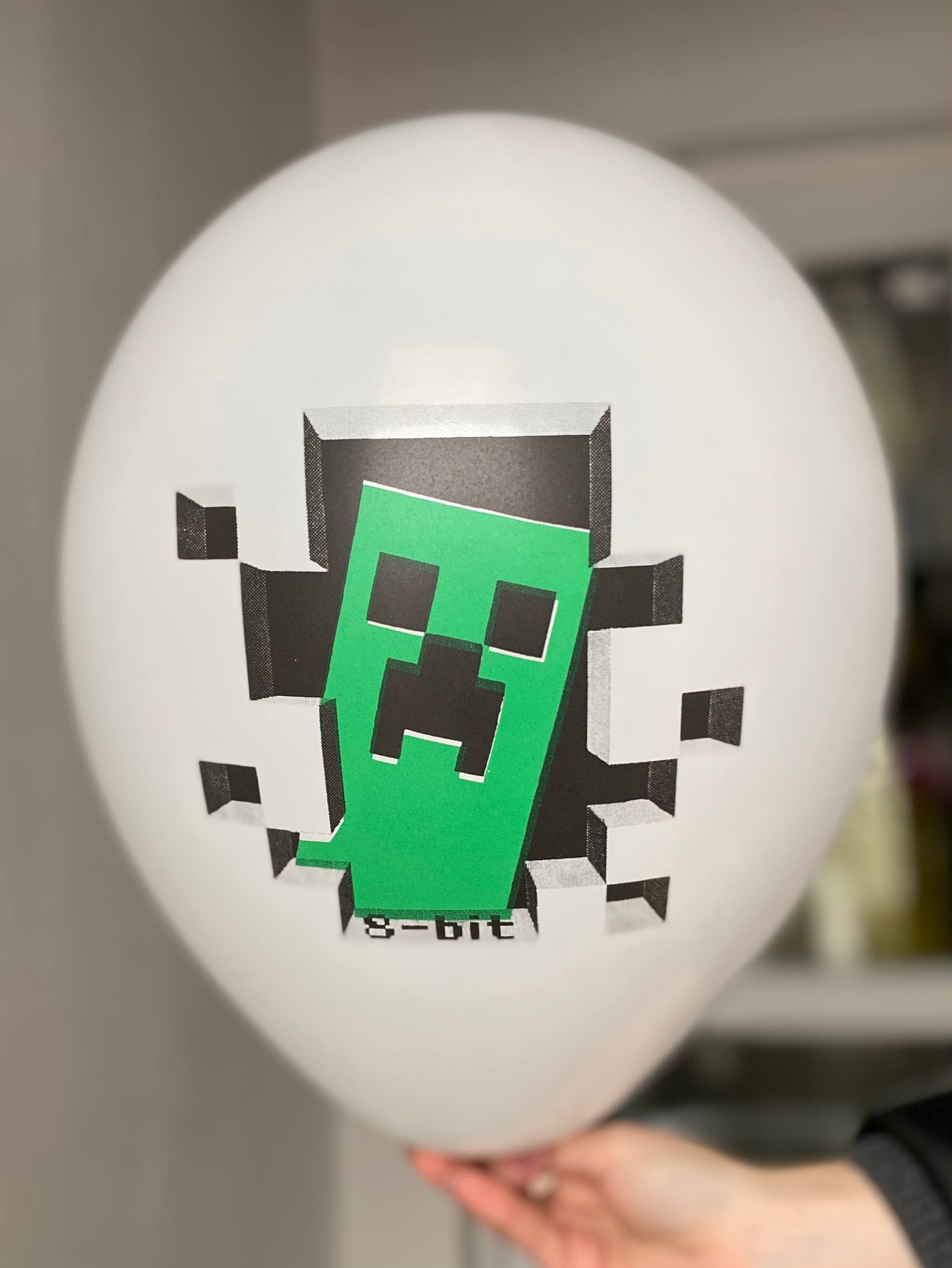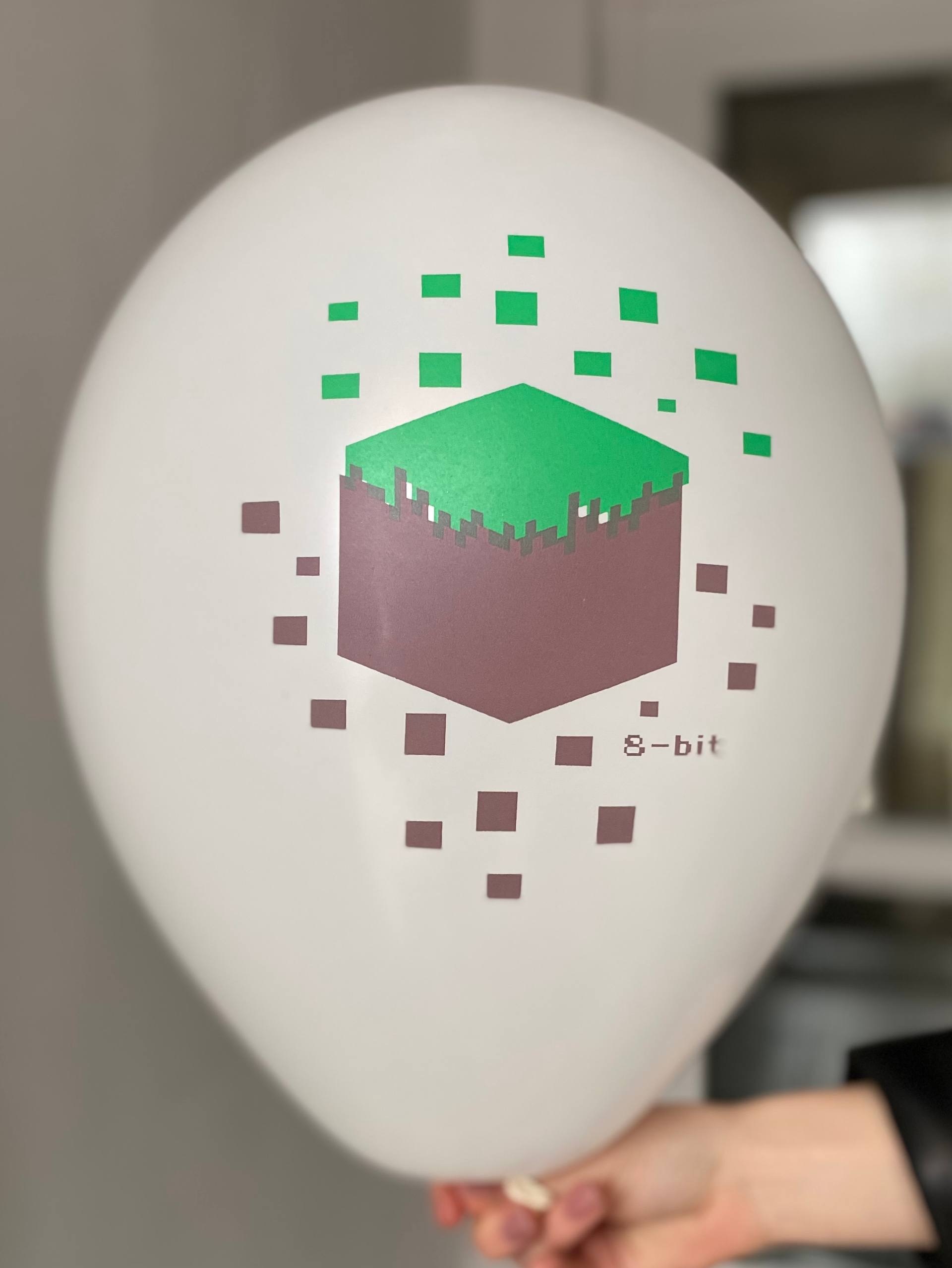 Воздушный шар с рисунком Майнкрафт/пиксели/видео игра 35см ПАЛИТРА №4351